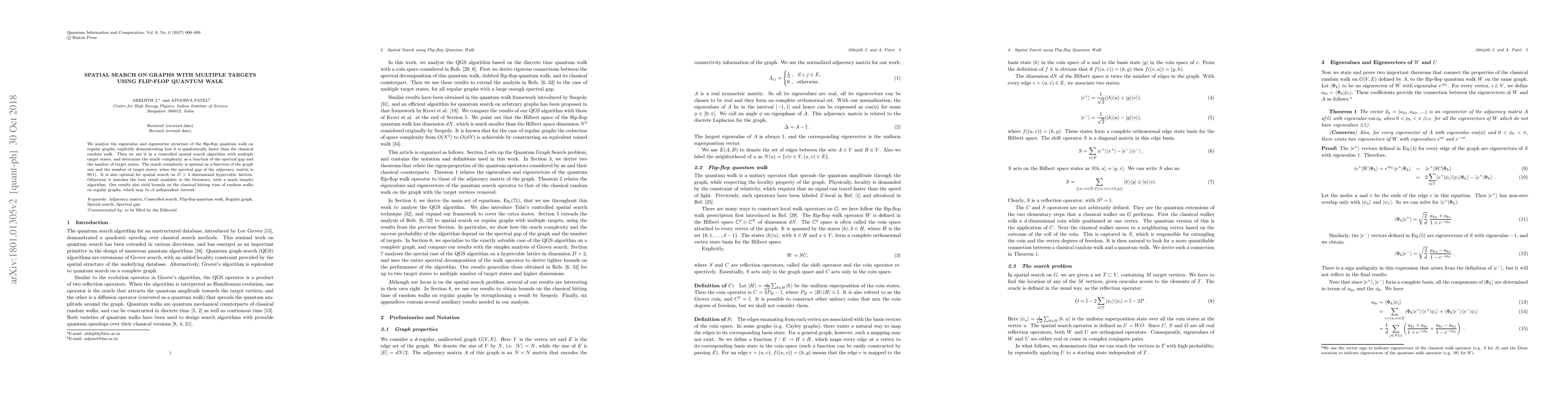 This paper investigates the flip-flop quantum walk on regular graphs, showing it is quadratically faster than classical random walks. It applies this quantum walk in a spatial search algorithm for multiple target states, achieving optimal oracle complexity under certain conditions.