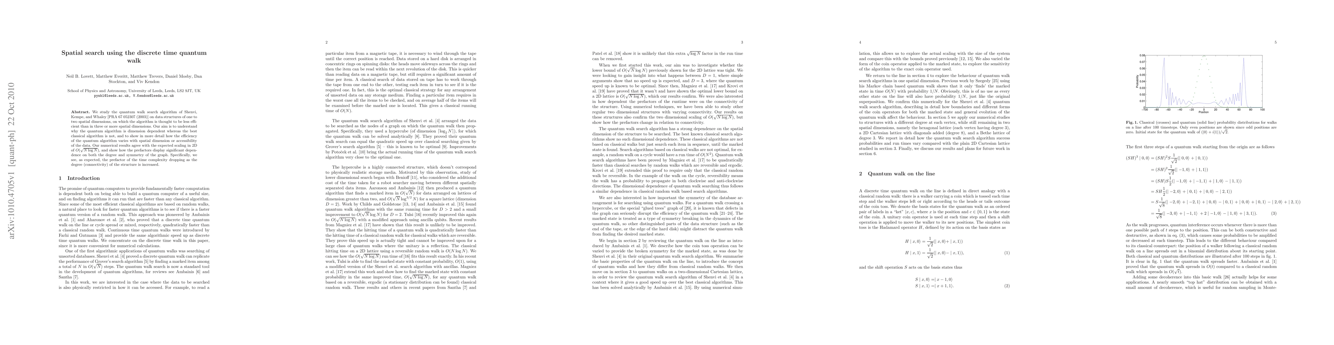 We study the quantum walk search algorithm of Shenvi, Kempe and Whaley [PRA 67 052307 (2003)] on data structures of one to two spatial dimensions, on which the algorithm is thought to be less efficient than in three or more spatial dimensions. Our aim is to understand why the quantum algorithm is dimension dependent whereas the best classical algorithm is not, and to show in more detail how the efficiency of the quantum algorithm varies with spatial dimension or accessibility of the data. Our numerical results agree with the expected scaling in 2D of $O(\sqrt{N \log N})$, and show how the prefactors display significant dependence on both the degree and symmetry of the graph. Specifically, we see, as expected, the prefactor of the time complexity dropping as the degree (connectivity) of the structure is increased.