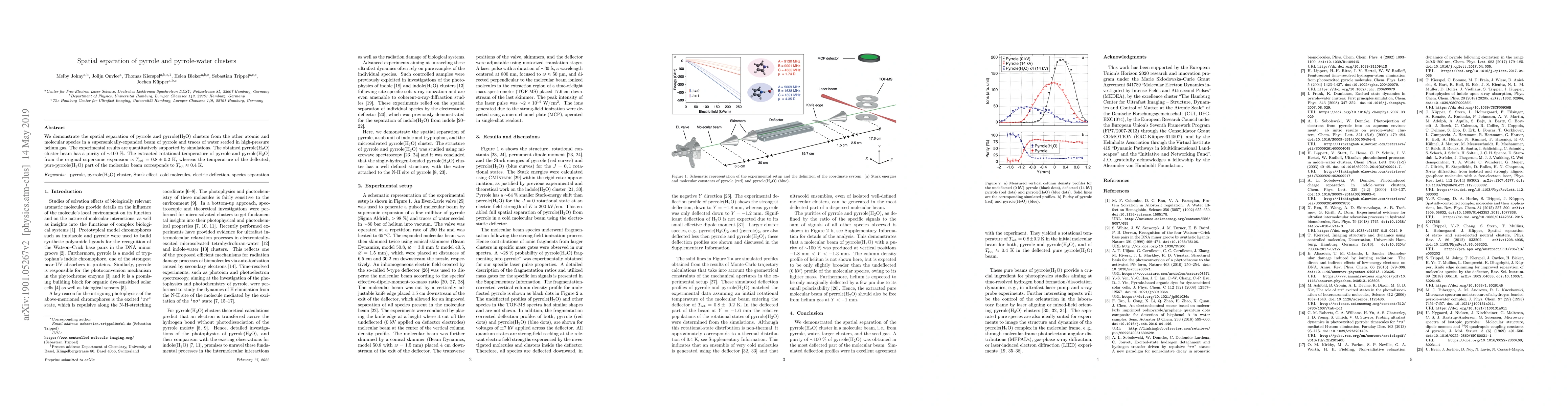 Researchers successfully separate pyrrole and pyrrole-water clusters from other species in a gas beam using supersonic expansion and high-pressure helium seeding. This method yields highly pure pyrrole-water cluster beams with near 100% purity and distinct rotational temperatures.
