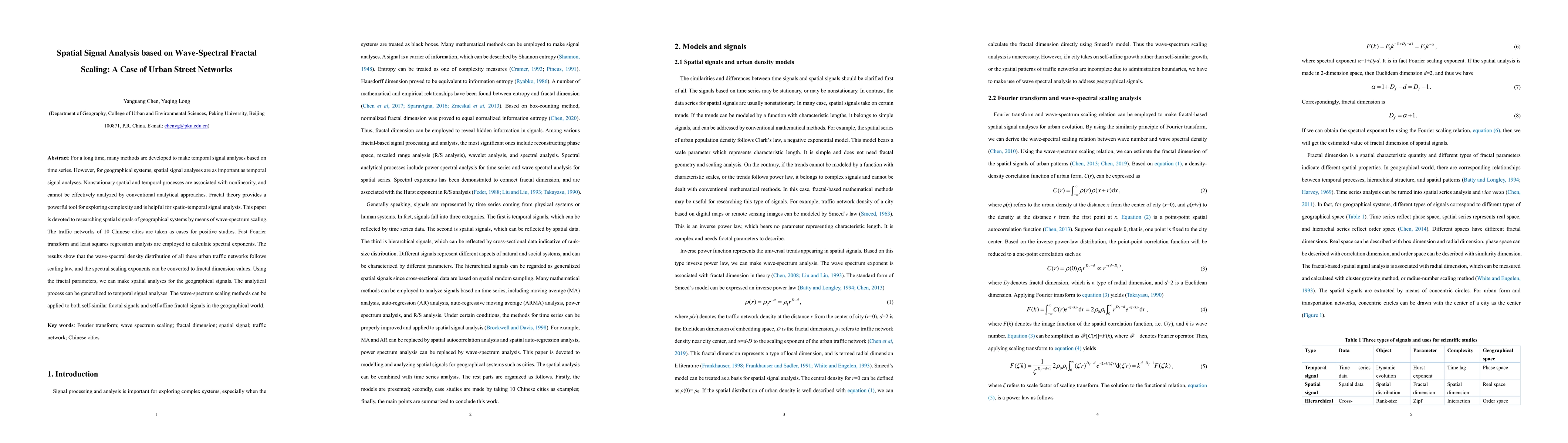 This paper explores spatial signal analysis of urban street networks using wave-spectral fractal scaling, demonstrating that urban traffic networks in 10 Chinese cities follow a scaling law. The study employs fractal theory and wave-spectrum analysis to derive fractal dimension values, offering a method applicable to both self-similar and self-affine fractal signals in geographical systems.