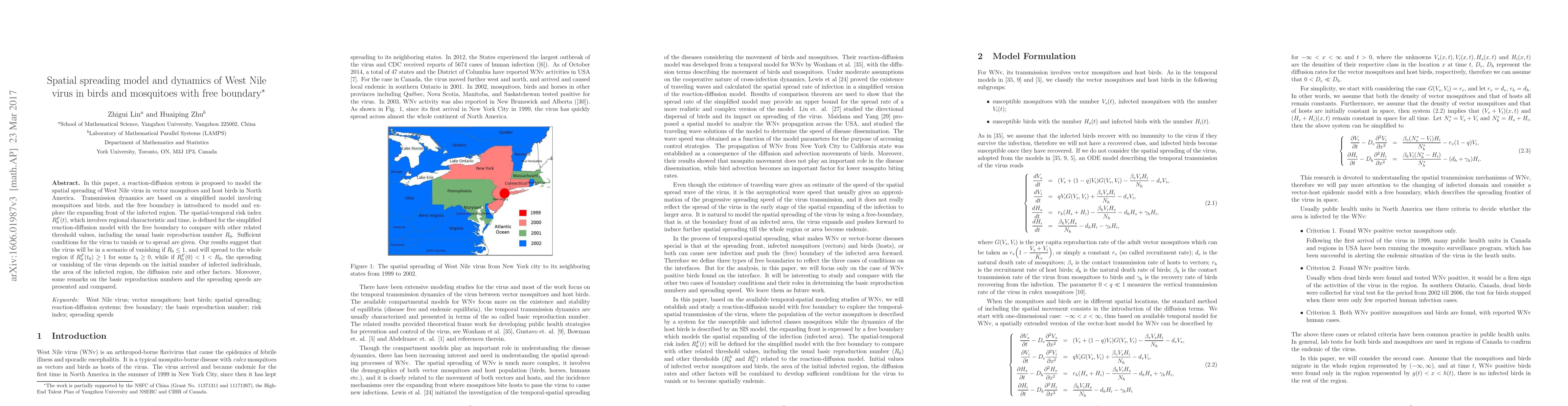 spreading of West Nile virus in vector mosquitoes and host birds in North