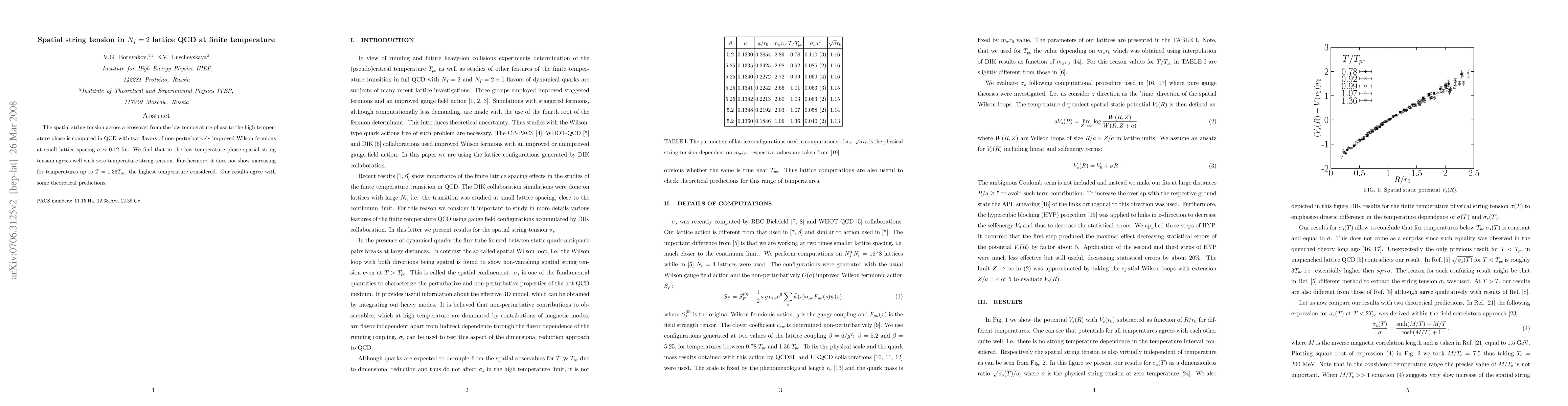 This study computes the spatial string tension in $N_f=2$ lattice QCD as temperature increases, finding it remains consistent with zero temperature values up to a critical temperature, and supports theoretical predictions that it does not significantly increase in this range.