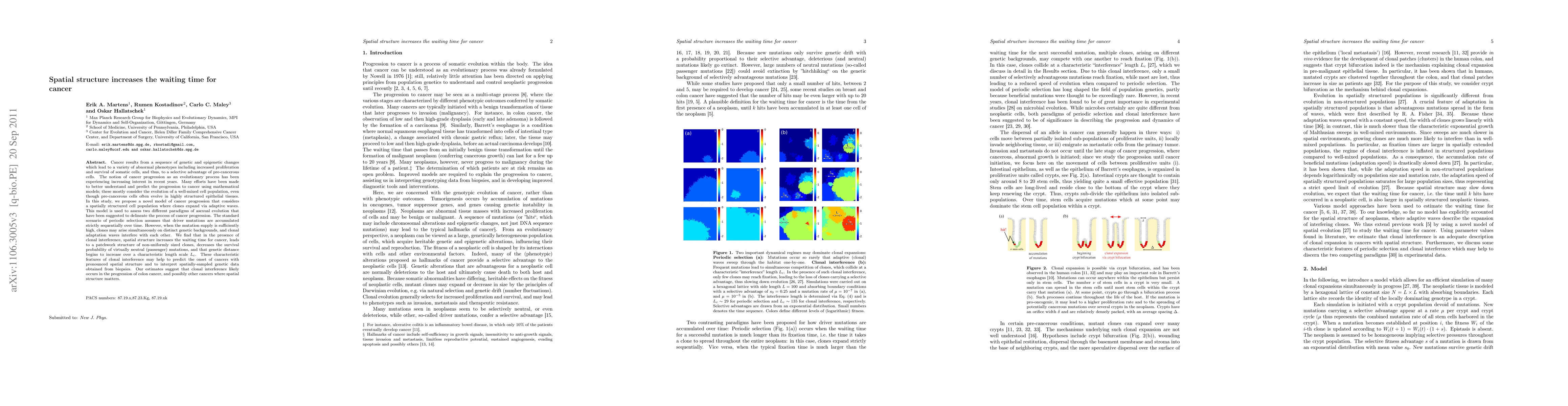 A new model of cancer progression suggests that spatial structure increases waiting time for cancer and leads to a patchwork structure of non-uniformly sized clones, with potential implications for predicting cancer onset and interpreting genetic data.