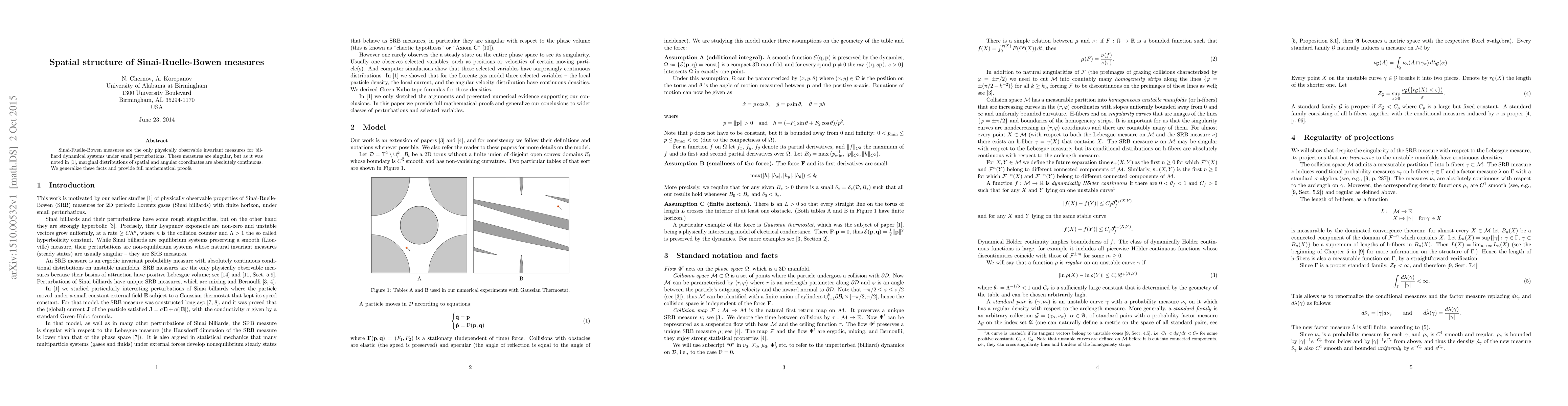 This paper investigates Sinai-Ruelle-Bowen measures for perturbed billiard systems, showing that while these measures are singular, their marginal distributions remain absolutely continuous. The authors provide comprehensive mathematical proofs for these observations.