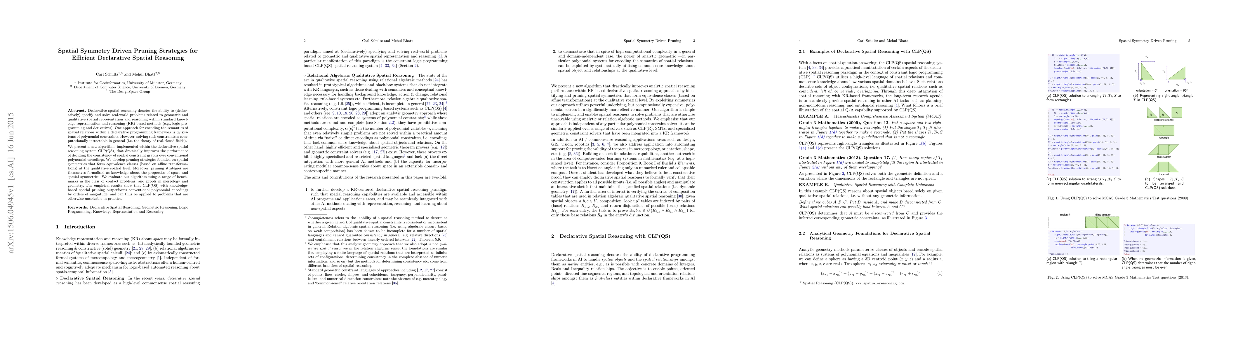 A new algorithm using spatial symmetries improves declarative spatial reasoning performance by orders of magnitude, making previously unsolvable problems solvable in practice.