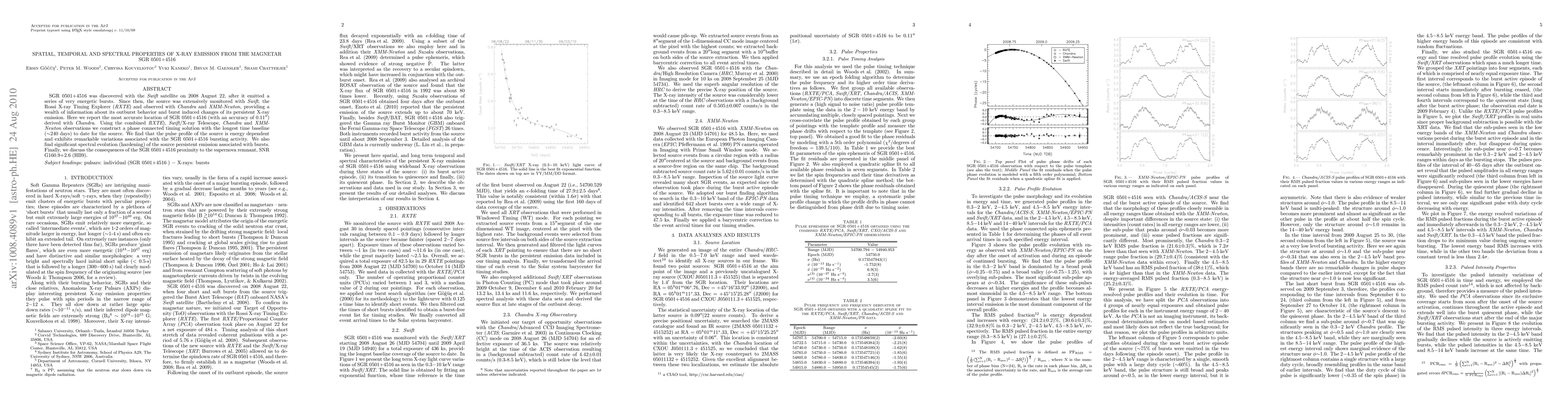 SGR~0501+4516 was discovered with the Swift satellite on 2008 August 22, after it emitted a series of very energetic bursts. Since then, the source was extensively monitored with Swift, the Rossi X-ray Timing Explorer (RXTE) and observed with Chandra and XMM-Newton, providing a wealth of information about its outburst behavior and burst induced changes of its persistent X-ray emission. Here we report the most accurate location of SGR~0501+4516 (with an accuracy of 0.11'') derived with Chandra. Using the combined RXTE, Swift/X-ray Telescope, Chandra and XMM-Newton observations we construct a phase connected timing solution with the longest time baseline (~240 days) to date for the source. We find that the pulse profile of the source is energy dependent and exhibits remarkable variations associated with the SGR~0501+4516 bursting activity. We also find significant spectral evolution (hardening) of the source persistent emission associated with bursts. Finally, we discuss the consequences of the SGR~0501+4516 proximity to the supernova remnant, SNR G160.9+2.6 (HB9).