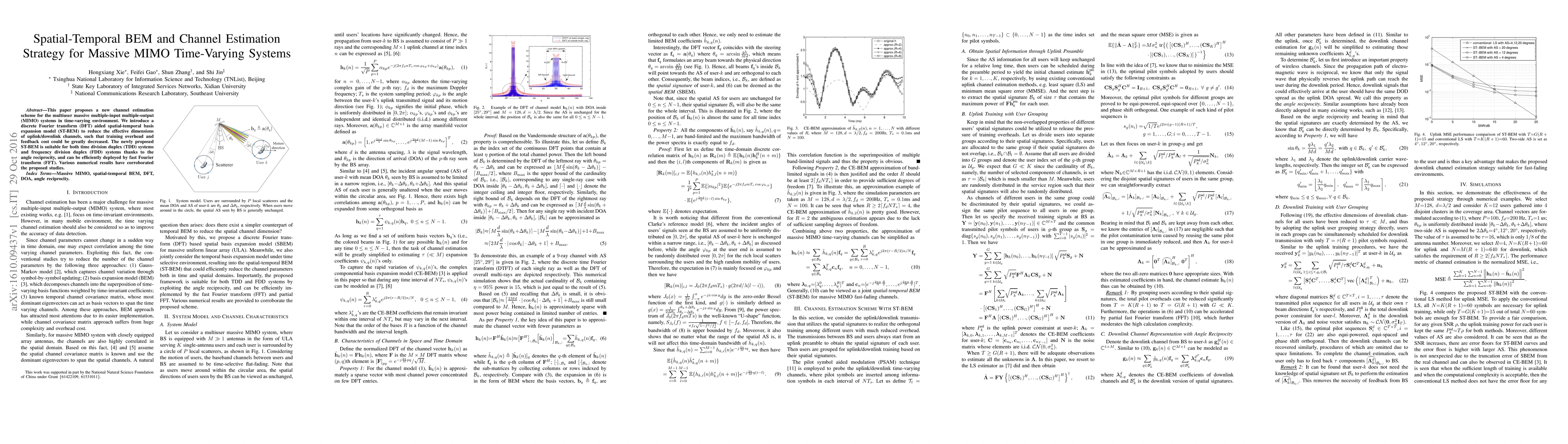 This paper introduces a DFT-aided spatial-temporal basis expansion model (ST-BEM) to reduce channel dimensions in massive MIMO systems, decreasing training overhead and feedback costs. The ST-BEM is applicable to both TDD and FDD systems and can be efficiently implemented using FFT, as demonstrated by numerical results.