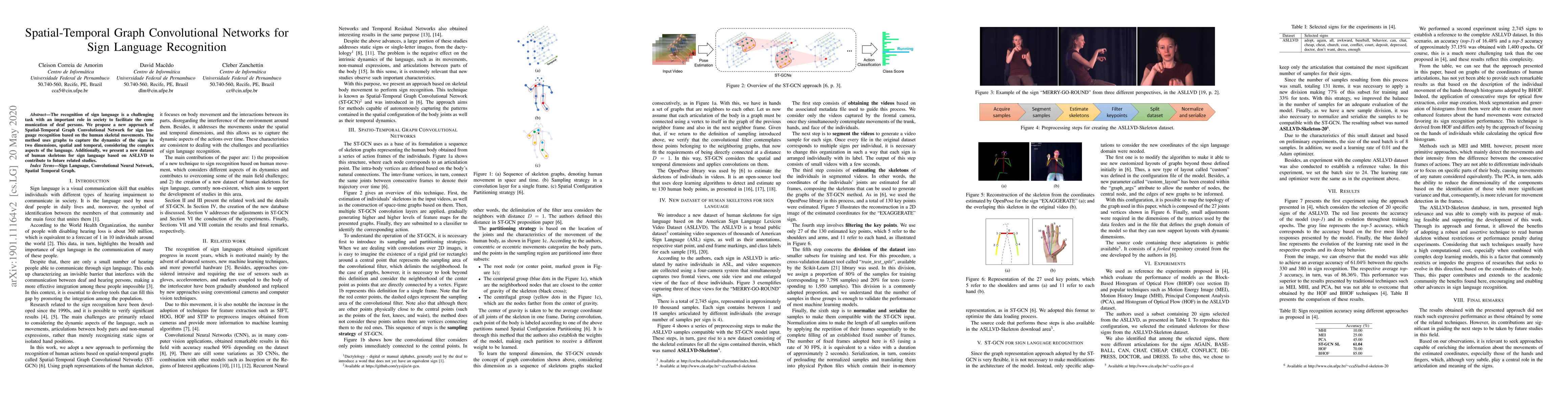 The paper proposes a Spatial-Temporal Graph Convolutional Network for sign language recognition using human skeletal movements, capturing the dynamics in both spatial and temporal dimensions. It also introduces a new dataset of human skeletons for sign language based on ASLLVD to support future research.