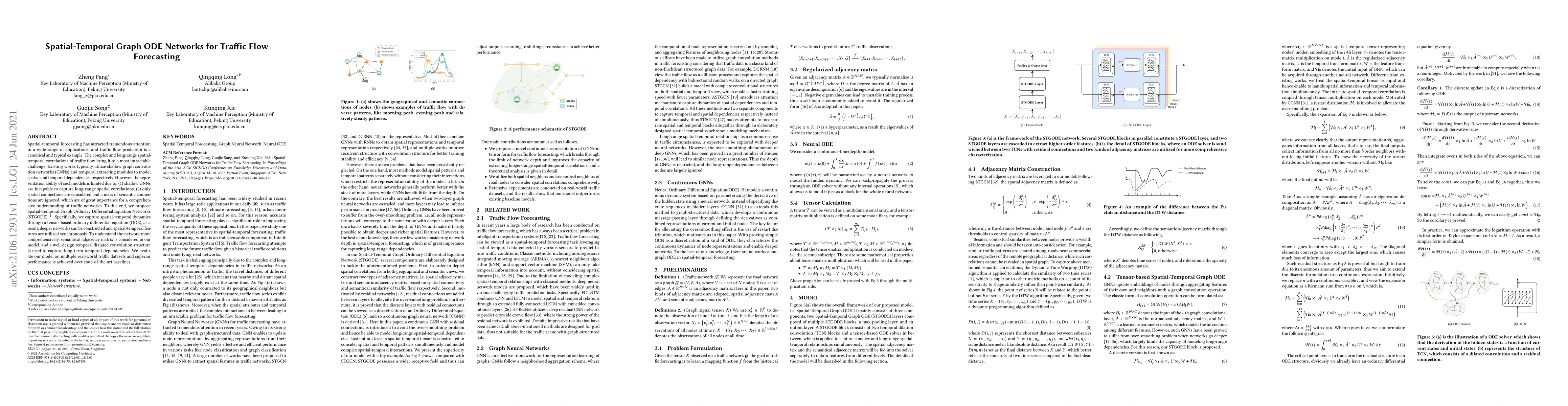 This paper proposes Spatial-Temporal Graph Ordinary Differential Equation Networks (STGODE) to improve traffic flow forecasting by capturing complex spatial-temporal correlations through deeper networks and considering both spatial and semantic connections. The model outperforms existing methods on multiple real-world datasets.