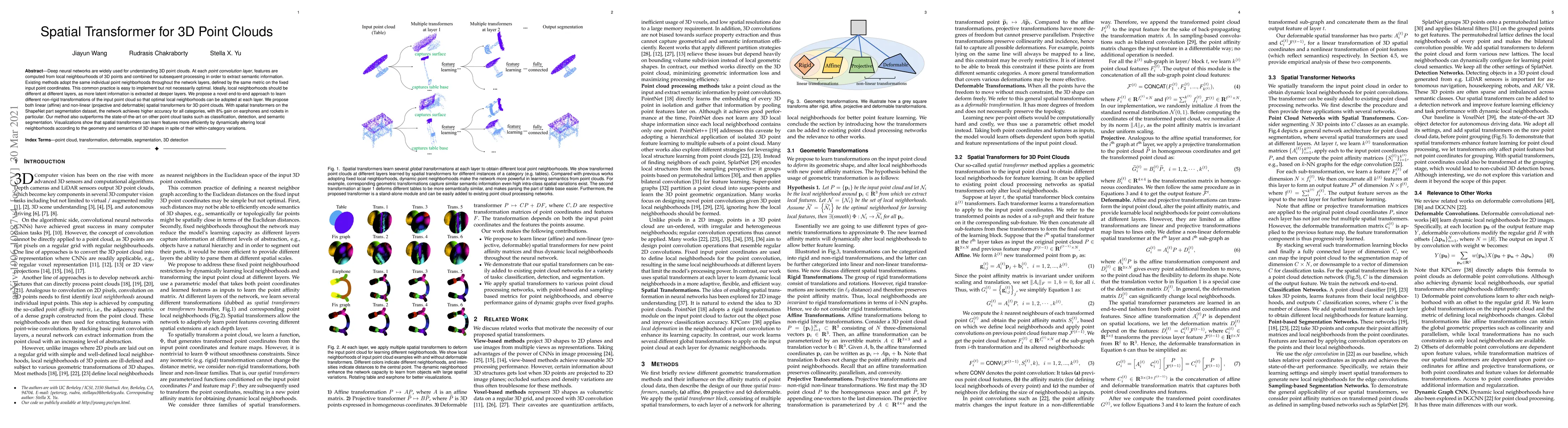 This paper introduces a novel end-to-end spatial transformer for 3D point clouds that learns non-rigid transformations to dynamically adjust local neighborhoods for optimal feature extraction at different network layers. The proposed method achieves higher accuracy and outperforms state-of-the-art on various point cloud tasks.