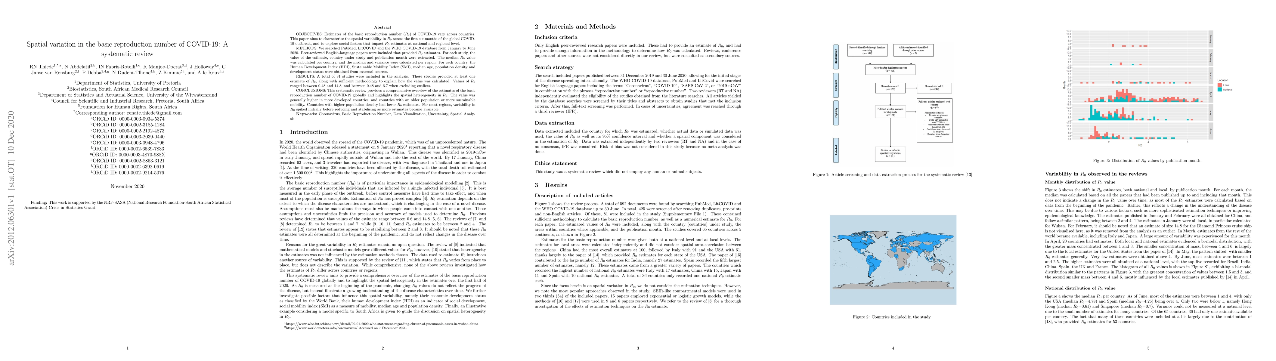 OBJECTIVES: Estimates of the basic reproduction number (R0) of COVID-19 vary across countries. This paper aims to characterise the spatial variability in R0 across the first six months of the global COVID-19 outbreak, and to explore social factors that impact R0 estimates at national and regional level. METHODS: We searched PubMed, LitCOVID and the WHO COVID-19 database from January to June 2020. Peer-reviewed English-language papers were included that provided R0 estimates. For each study, the value of the estimate, country under study and publication month were extracted. The median R0 value was calculated per country, and the median and variance were calculated per region. For each country with an R0 estimate, the Human Development Index (HDI), Sustainable Mobility Index (SMI), median age, population density and development status were obtained from external sources. RESULTS: A total of 81 studies were included in the analysis. These studies provided at least one estimate of R0, along with sufficient methodology to explain how the value was calculated. Values of R0 ranged between 0.48 and 14.8, and between 0.48 and 6.7 when excluding outliers. CONCLUSIONS: This systematic review provides a comprehensive overview of the estimates of the basic reproduction number of COVID-19 globally and highlights the spatial heterogeneity in R0. Higher values were recorded in more developed countries, and countries with an older population or more sustainable mobility. Countries with higher population density had lower R0 estimates. For most regions, variability in R0 spiked initially before reducing and stabilising as more estimates became available.