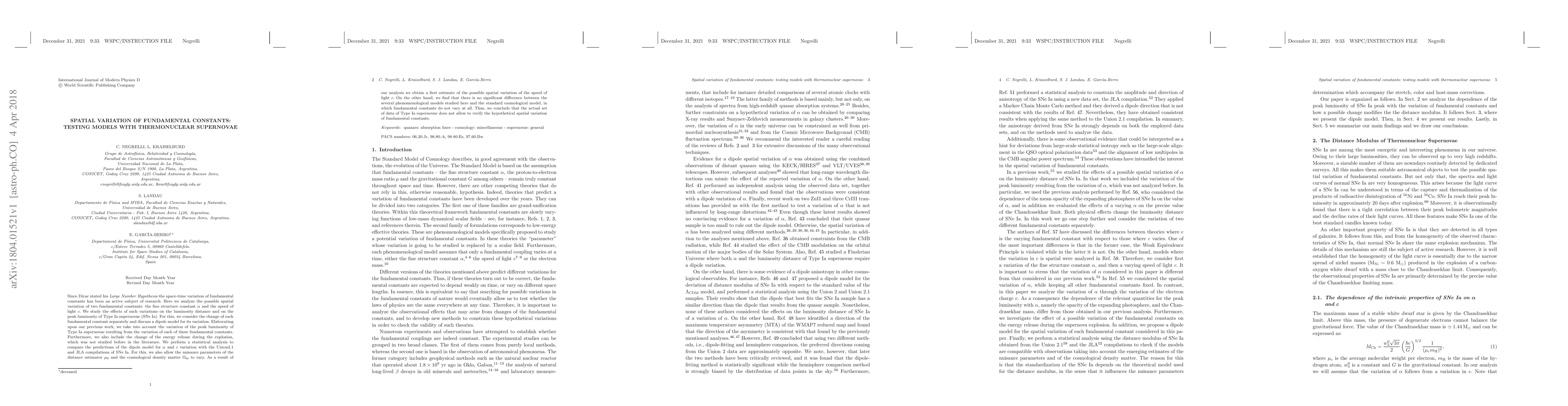 This paper investigates the spatial variation of the fine structure constant and the speed of light using Type Ia supernovae, finding no significant difference between models allowing for such variation and the standard cosmological model. The analysis provides a first estimate of the possible spatial variation of the speed of light but concludes that current supernova data cannot verify the hypothesis.