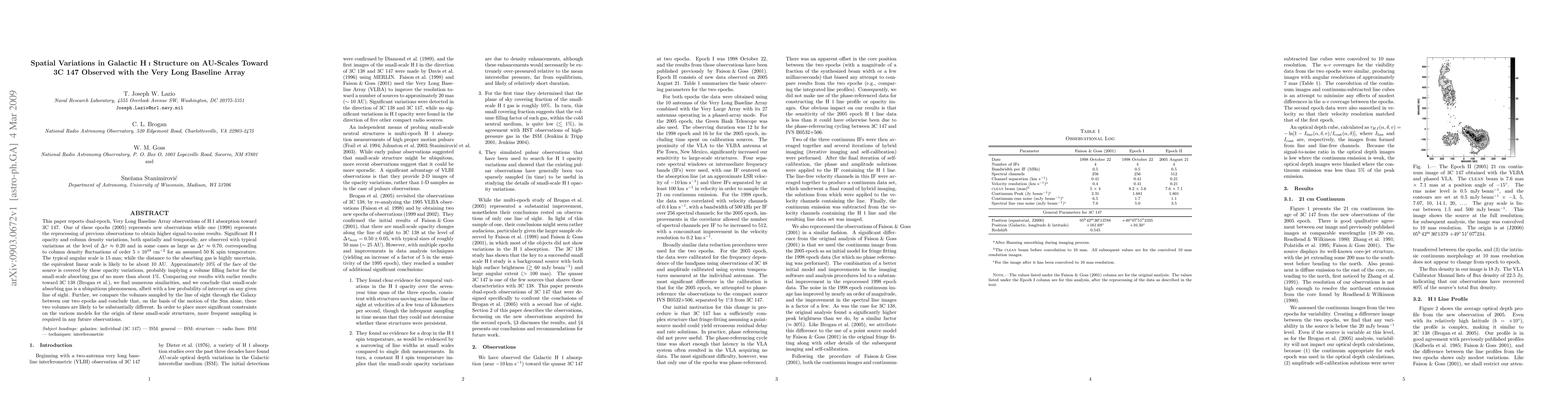 This paper reports on dual-epoch Very Long Baseline Array observations of H I absorption toward 3C 147, revealing significant spatial and temporal variations in H I opacity and column density, with fluctuations up to Δτ ~ 0.70. The study suggests that small-scale absorbing gas is common, though rare along individual lines of sight, and calls for more frequent observations to better constrain models of these structures.
