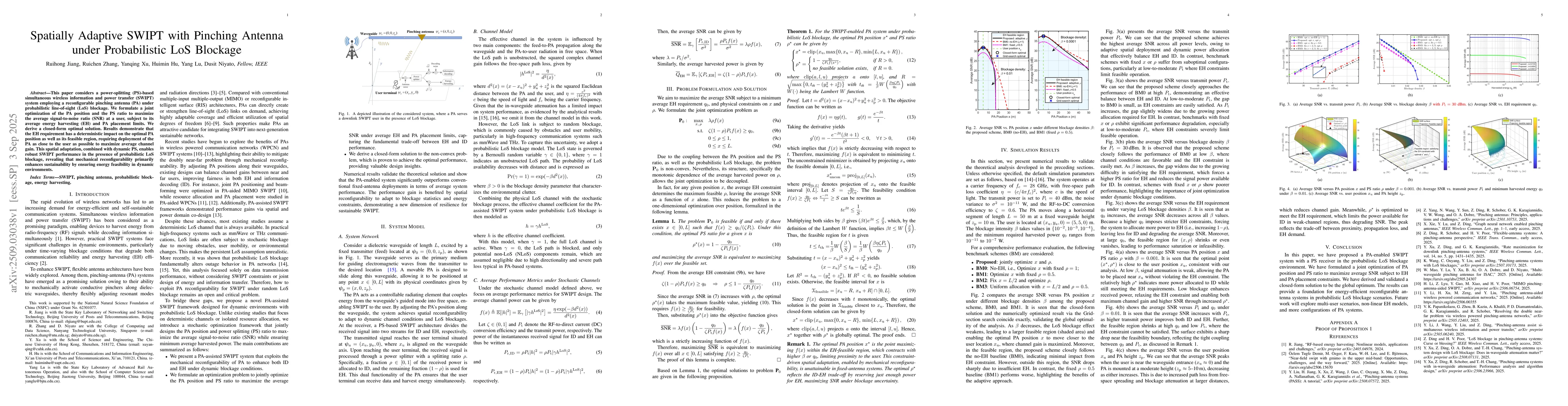 This paper considers a power-splitting (PS)-based simultaneous wireless information and power transfer (SWIPT) system employing a reconfigurable pinching antenna (PA) under probabilistic line-of-sight (LoS) blockage. We formulate a joint optimization of the PA position and the PS ratio to maximize the average signal-to-noise ratio (SNR) at a user, subject to its average energy harvesting (EH) and PA placement limits. We derive a closed-form optimal solution. Results demonstrate that the EH requirement has a deterministic impact on the optimal PA position as well as its feasible region, requiring deployment of the PA as close to the user as possible to maximize average channel gain. This spatial adaptation, combined with dynamic PS, enables robust SWIPT performance in the presence of probabilistic LoS blockage, revealing that mechanical reconfigurability primarily enhances sustainability by ensuring energy feasibility in dynamic environments.