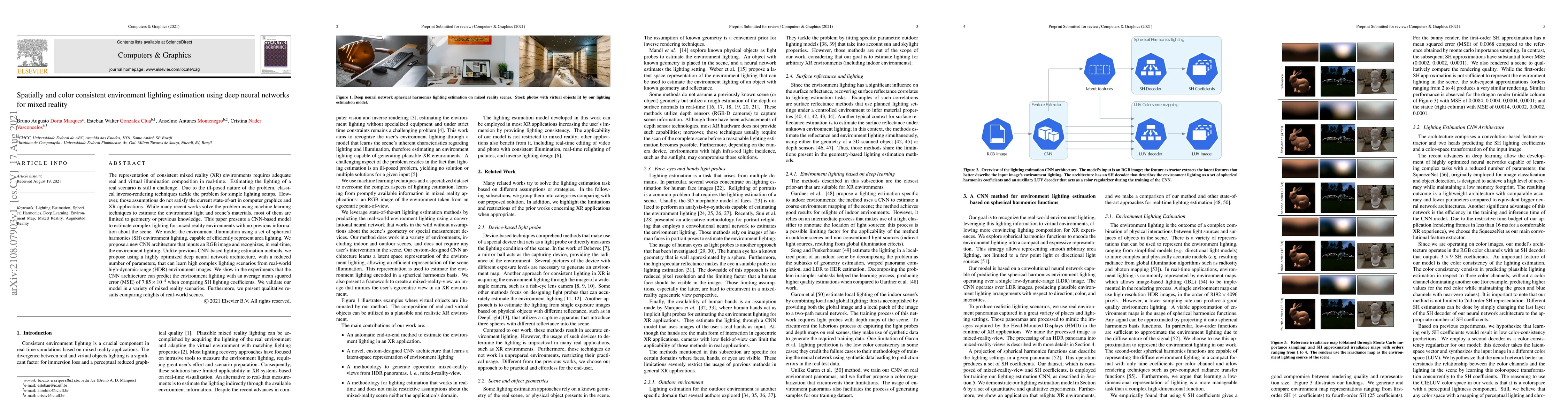 This research paper introduces a CNN-based model for estimating complex environment lighting in mixed reality applications without prior scene information. The proposed model uses spherical harmonics to represent area lighting and demonstrates real-time performance with a reduced number of parameters, achieving an average mean squared error of 7.85e-04 in lighting coefficient predictions. The model's effectiveness is validated in various mixed reality scenarios.