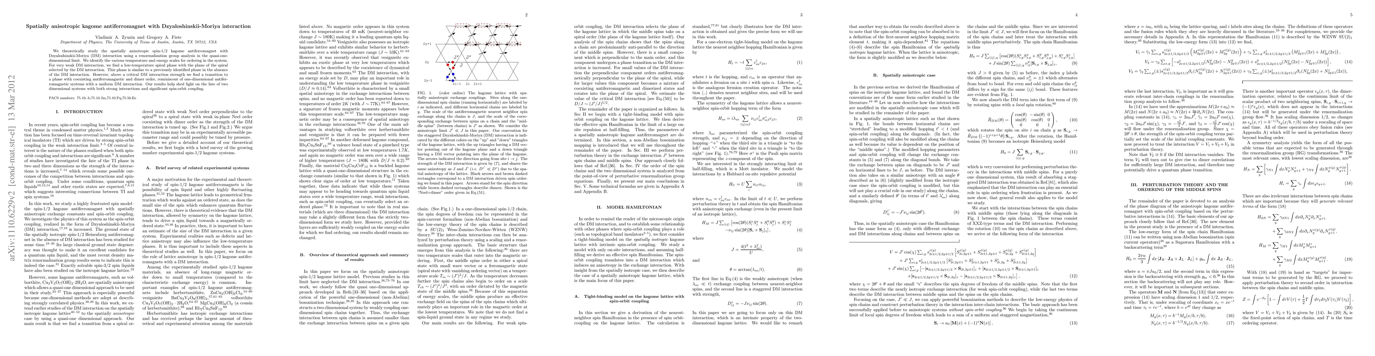 This paper investigates a spatially anisotropic spin-1/2 kagome antiferromagnet with Dzyaloshinskii-Moriya interaction, revealing a low-temperature spiral phase for weak DM interaction, and a transition to a phase with antiferromagnetic and dimer order at stronger DM interactions, using renormalization group analysis.