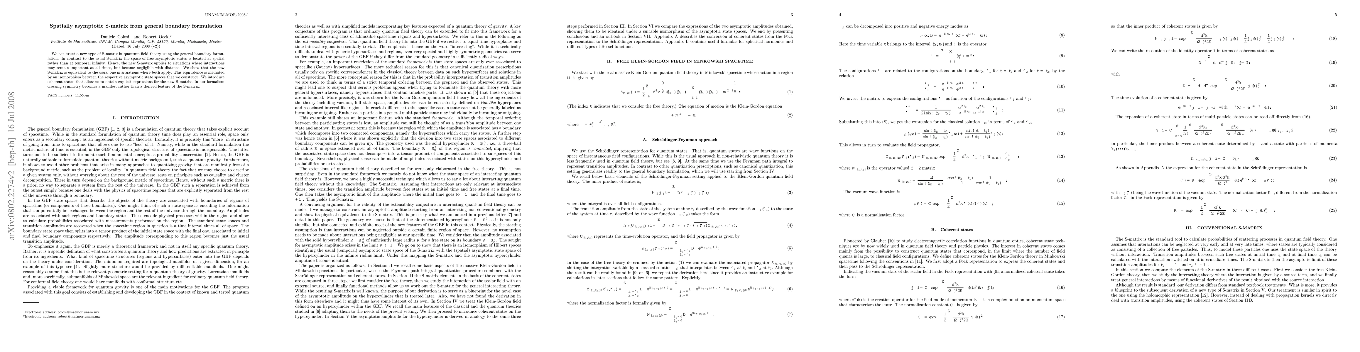 We construct a new type of S-matrix in quantum field theory using the general boundary formulation. In contrast to the usual S-matrix the space of free asymptotic states is located at spatial rather than at temporal infinity. Hence, the new S-matrix applies to situations where interactions may remain important at all times, but become negligible with distance. We show that the new S-matrix is equivalent to the usual one in situations where both apply. This equivalence is mediated by an isomorphism between the respective asymptotic state spaces that we construct. We introduce coherent states that allow us to obtain explicit expressions for the new S-matrix. In our formalism crossing symmetry becomes a manifest rather than a derived feature of the S-matrix.