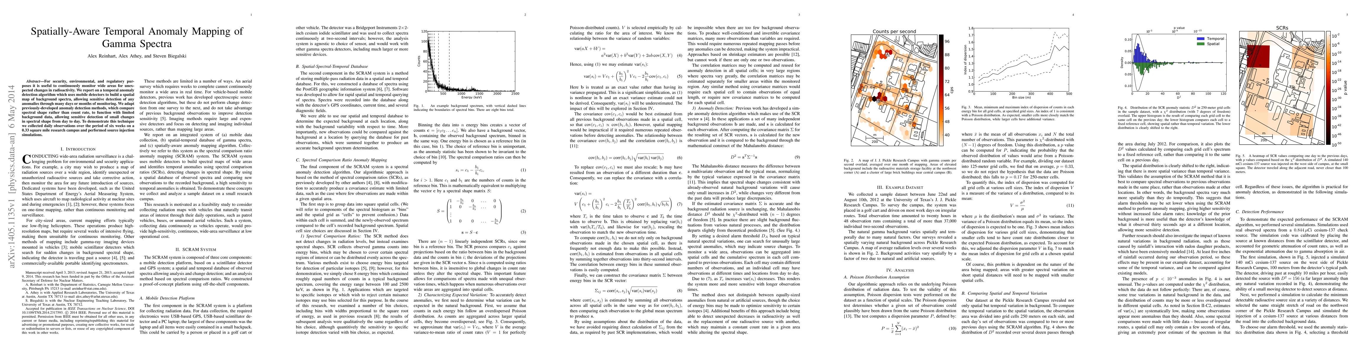 For security, environmental, and regulatory purposes it is useful to continuously monitor wide areas for unexpected changes in radioactivity. We report on a temporal anomaly detection algorithm which uses mobile detectors to build a spatial map of background spectra, allowing sensitive detection of any anomalies through many days or months of monitoring. We adapt previously-developed anomaly detection methods, which compare spectral shape rather than count rate, to function with limited background data, allowing sensitive detection of small changes in spectral shape from day to day. To demonstrate this technique we collected daily observations over the period of six weeks on a 0.33 square mile research campus and performed source injection simulations.