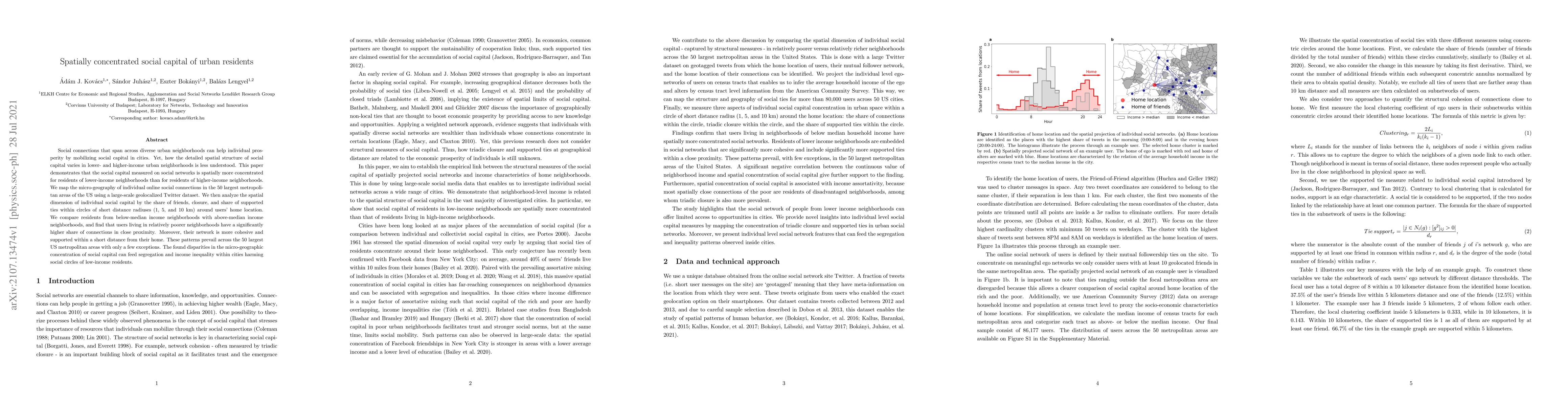 Research finds that social connections in lower-income urban neighborhoods are more spatially concentrated within close proximity to residents' homes, while those in higher-income areas are less so, exacerbating income inequality.