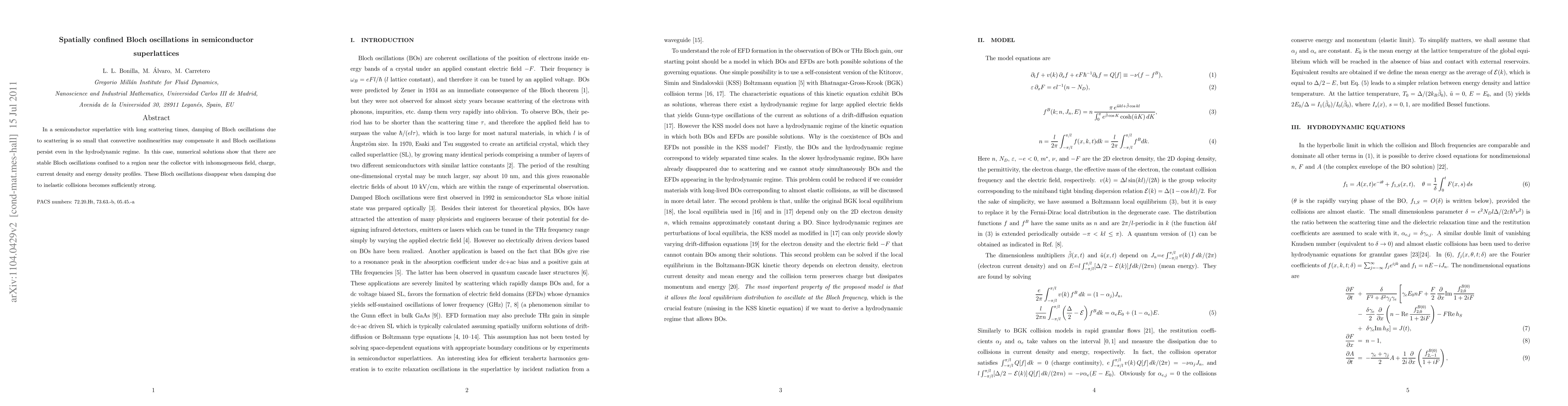 This paper investigates the persistence of Bloch oscillations in semiconductor superlattices under conditions where scattering times are long enough to allow convective nonlinearities to compensate for damping. Numerical solutions reveal spatially confined Bloch oscillations in regions near the collector with distinct field, charge, current, and energy density profiles, which vanish when inelastic collision-induced damping is strong enough.