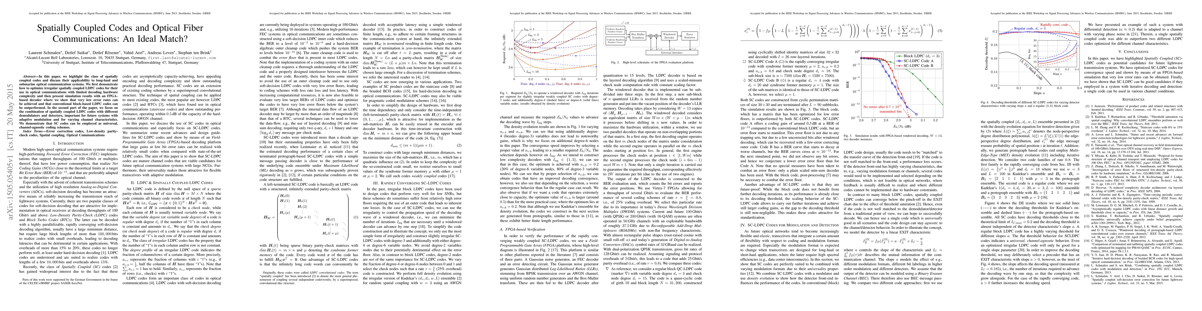 This paper explores the application of spatially coupled LDPC codes in optical communication systems, demonstrating their optimization for low-complexity decoding and achieving low error rates. It also investigates their adaptability with various demodulators and detectors, showcasing their potential as universal, channel-agnostic coding schemes.