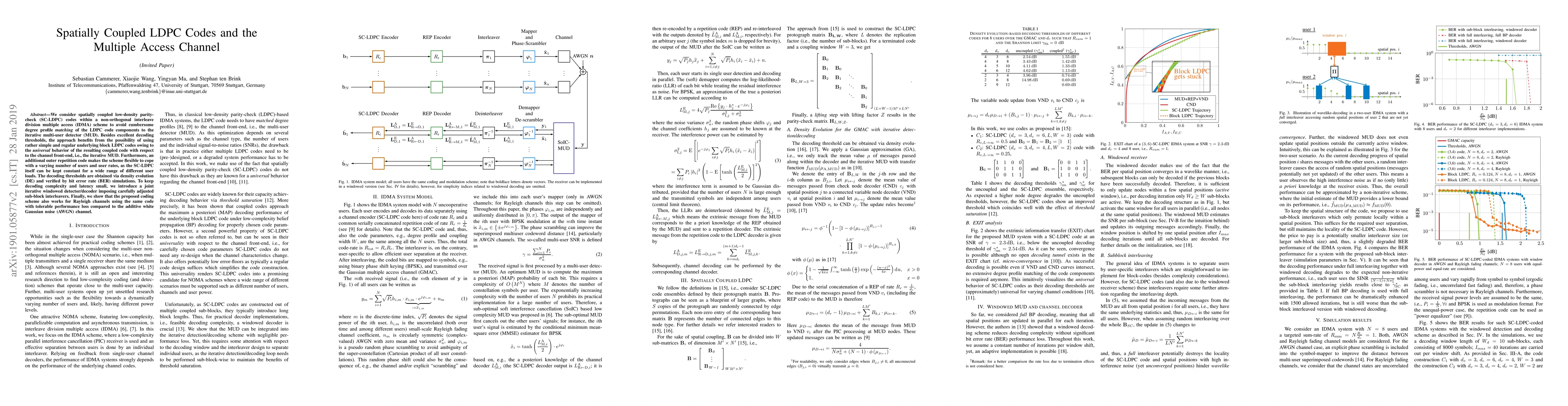 This paper proposes a spatially coupled LDPC coding scheme for non-orthogonal interleave division multiple access (IDMA) to simplify multi-user decoding, achieving high decoding thresholds with simple block LDPC codes. The scheme is flexible for varying user loads and works effectively for both Rayleigh and AWGN channels.