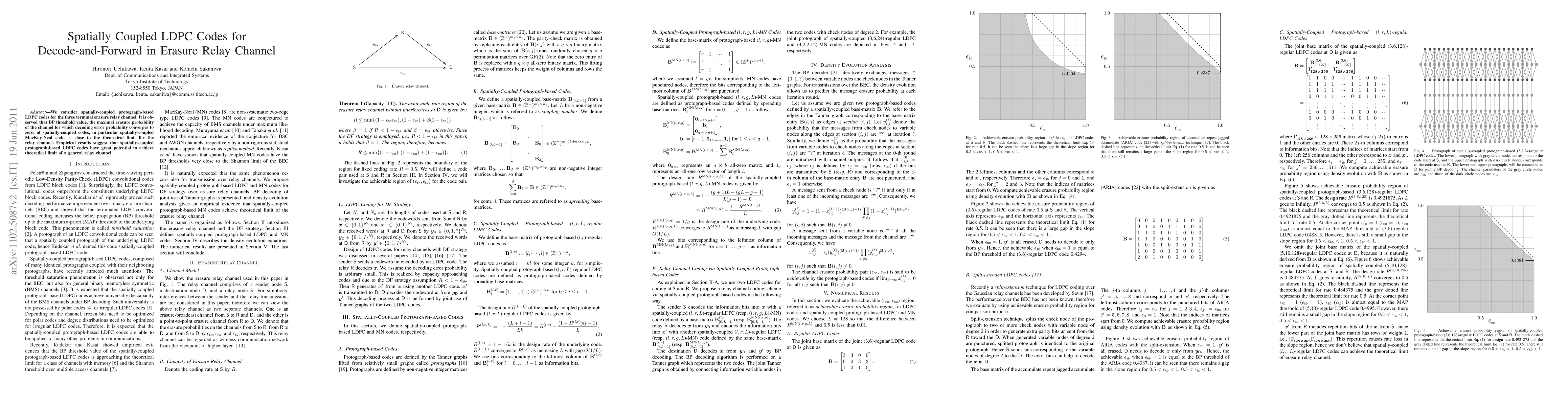 This paper investigates spatially-coupled protograph-based LDPC codes for the three-terminal erasure relay channel, finding that the BP threshold value of these codes approaches the theoretical limit, indicating their potential to achieve optimal performance in such channels. Empirical results suggest these codes are promising for reaching the theoretical limit of a general relay channel.