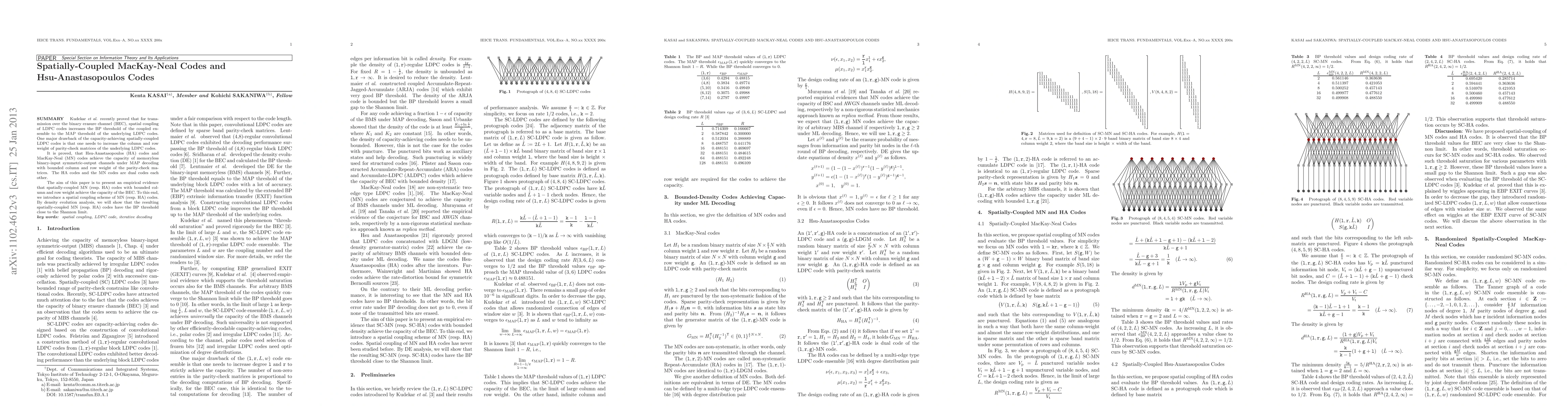 This paper investigates spatially-coupled MacKay-Neal (MN) and Hsu-Anastasopoulos (HA) codes, demonstrating that they achieve capacity for the binary erasure channel (BEC) while maintaining bounded column and row weights. Through density evolution analysis, it shows that these coupled codes reach thresholds close to the Shannon limit.