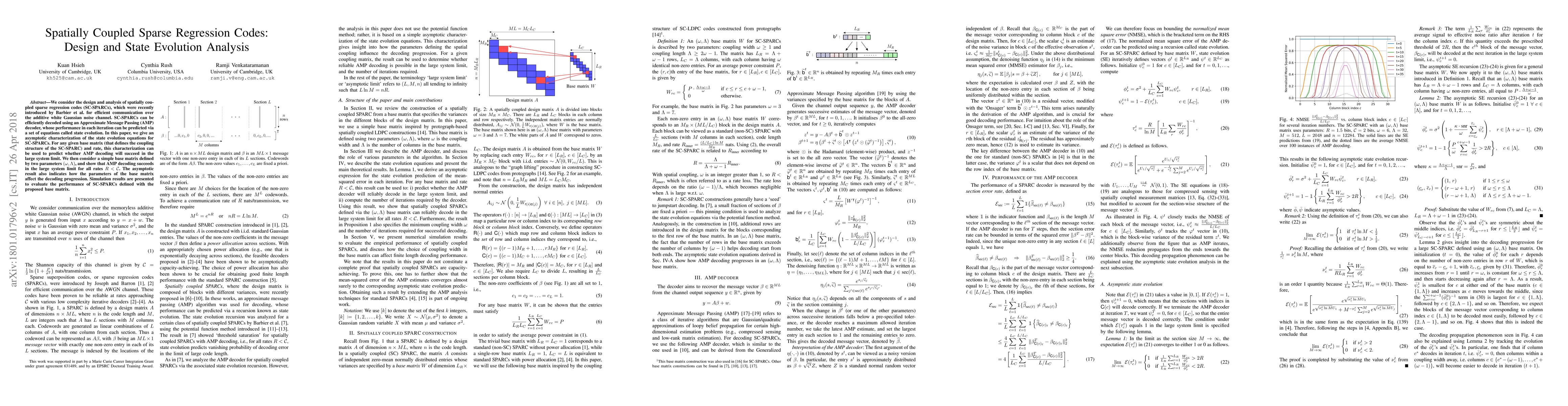 This paper presents an asymptotic characterization of state evolution equations for spatially coupled sparse regression codes (SC-SPARCs), ensuring AMP decoding success for rates below a certain threshold. It also explores how base matrix parameters impact decoding, with simulation results validating the proposed base matrix' performance.