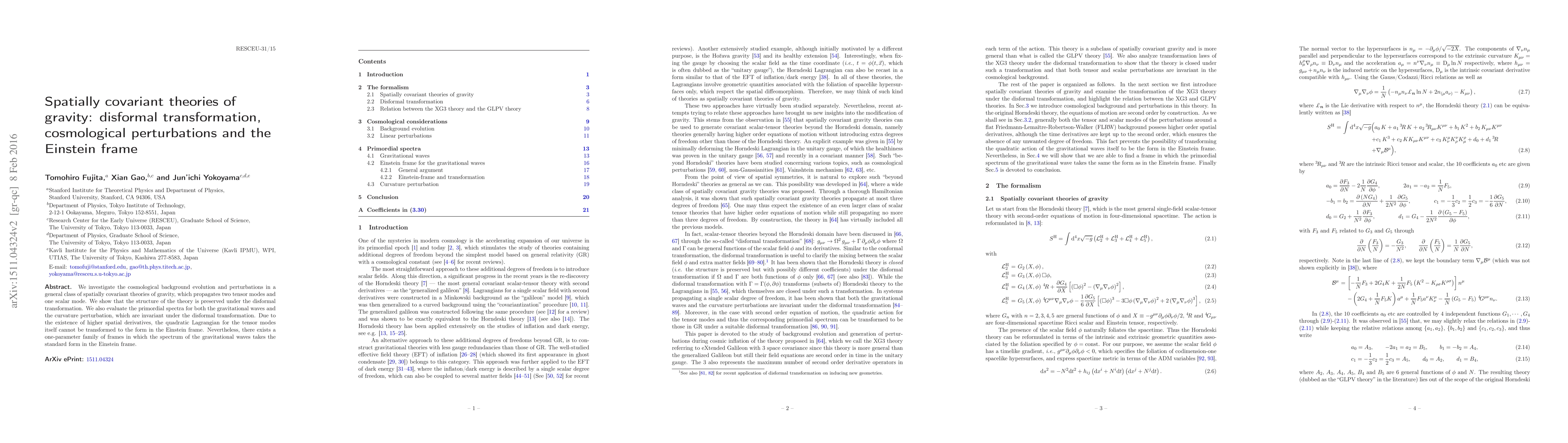 This paper explores the cosmological evolution and perturbations in spatially covariant theories of gravity, revealing that the theory's structure remains intact under disformal transformations. It finds that the primordial spectra for gravitational waves and curvature perturbations are invariant under these transformations, but the tensor modes' Lagrangian cannot be fully transformed to the Einstein frame due to higher spatial derivatives, though a one-parameter family of frames allows the gravitational wave spectrum to match the Einstein frame form.