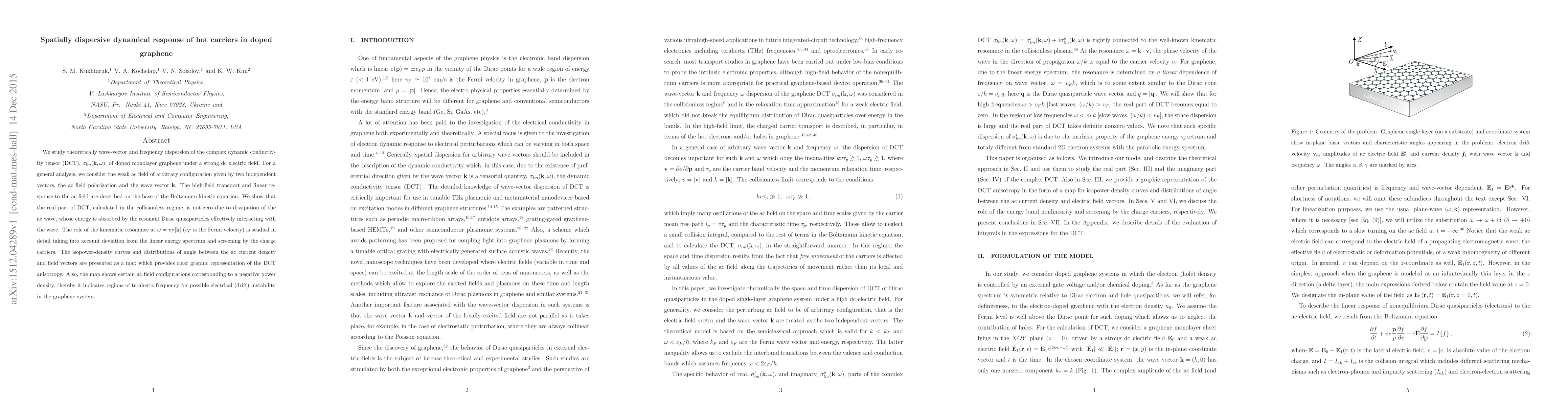 Researchers studied how doped graphene responds to strong electric fields and found that it can exhibit complex anisotropic conductivity due to the interaction with resonant Dirac quasiparticles, which can lead to electrical instability at terahertz frequencies.