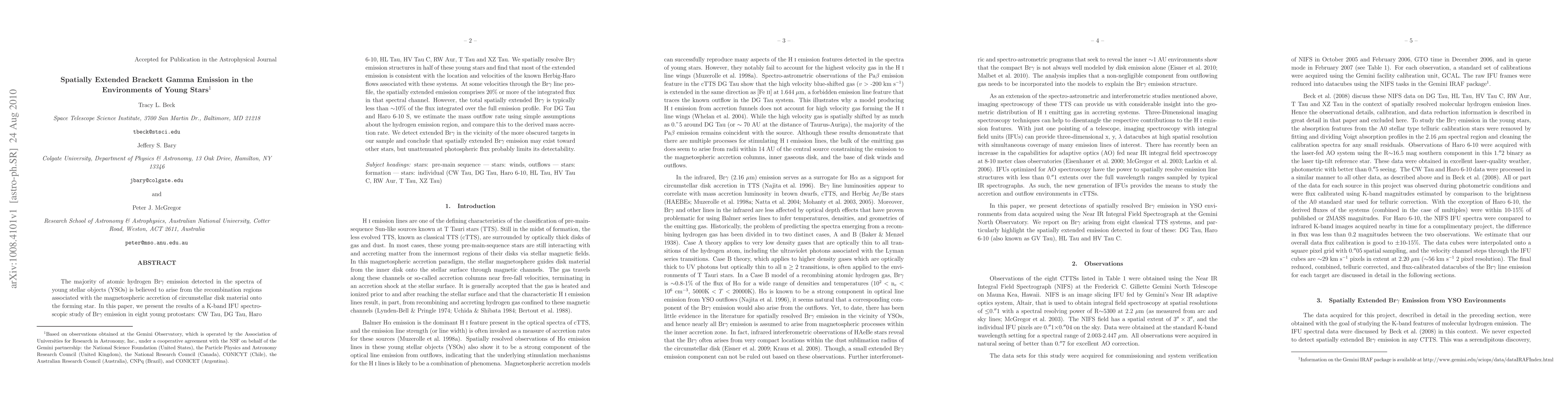 The majority of atomic hydrogen Br{\gamma} emission detected in the spectra of young stellar objects (YSOs) is believed to arise from the recombination regions associated with the magnetospheric accretion of circumstellar disk material onto the forming star. In this paper, we present the results of a K-band IFU spectroscopic study of Br{\gamma} emission in eight young protostars: CW Tau, DG Tau, Haro 6-10, HL Tau, HV Tau C, RW Aur, T Tau and XZ Tau. We spatially resolve Br{\gamma} emission structures in half of these young stars and find that most of the extended emission is consistent with the location and velocities of the known Herbig-Haro flows associated with these systems. At some velocities through the Br{\gamma} line profile, the spatially extended emission comprises 20% or more of the integrated flux in that spectral channel. However, the total spatially extended Br{\gamma} is typically less than ~10% of the flux integrated over the full emission profile. For DG Tau and Haro 6-10 S, we estimate the mass outflow rate using simple assumptions about the hydrogen emission region, and compare this to the derived mass accretion rate. We detect extended Br{\gamma} in the vicinity of the more obscured targets in our sample and conclude that spatially extended Br{\gamma} emission may exist toward other stars, but unattenuated photospheric flux probably limits its detectability.