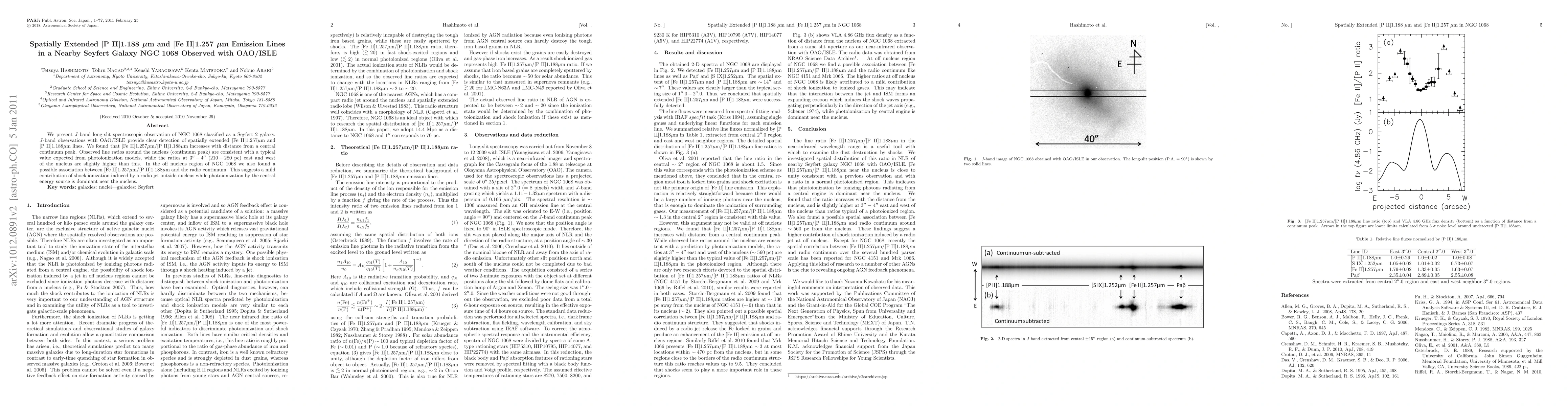 Researchers used OAO/ISLE spectroscopy to detect spatially extended [Fe II] and [P II] emission lines in the Seyfert galaxy NGC 1068, finding a connection between these lines and radio continuum near the nucleus.