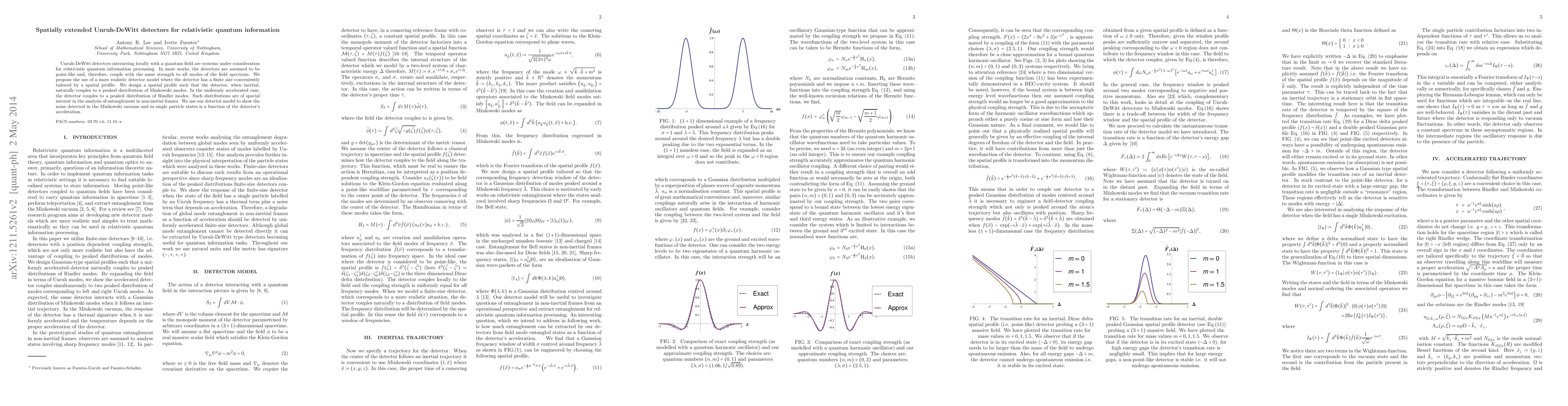 This paper proposes a spatially extended Unruh-Dewitt detector model with a finite size to study relativistic quantum information processing. It demonstrates that such detectors naturally couple to specific distributions of Minkowski and Rindler modes, depending on whether they are inertial or accelerated, respectively.