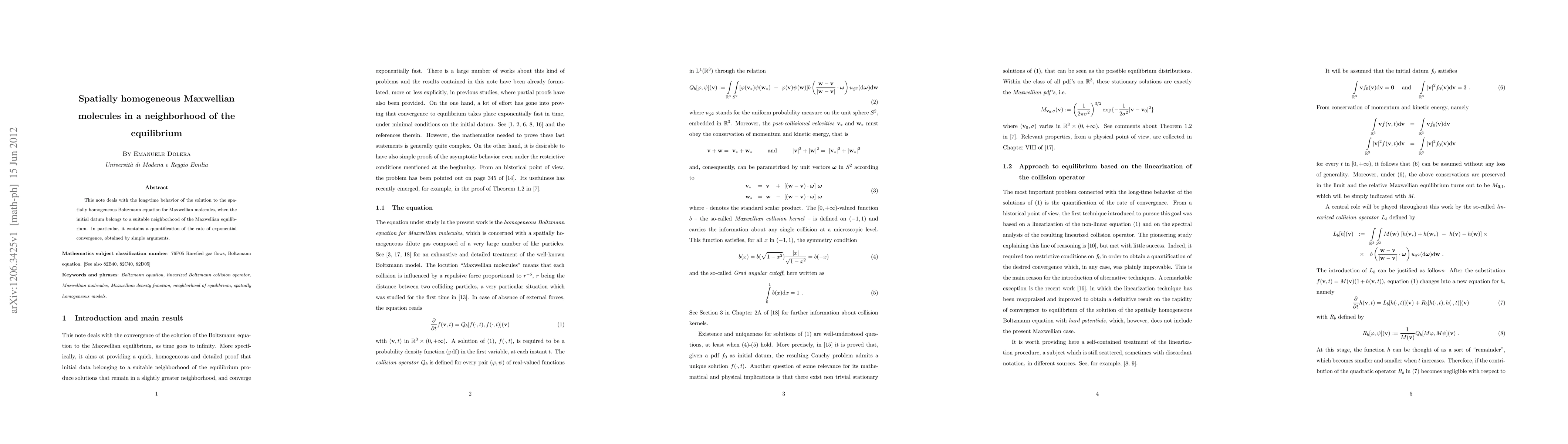 This paper investigates the long-term behavior of solutions to the spatially homogeneous Boltzmann equation for Maxwellian molecules, focusing on initial data near the Maxwellian equilibrium. It provides a quantification of the exponential convergence rate using straightforward arguments.