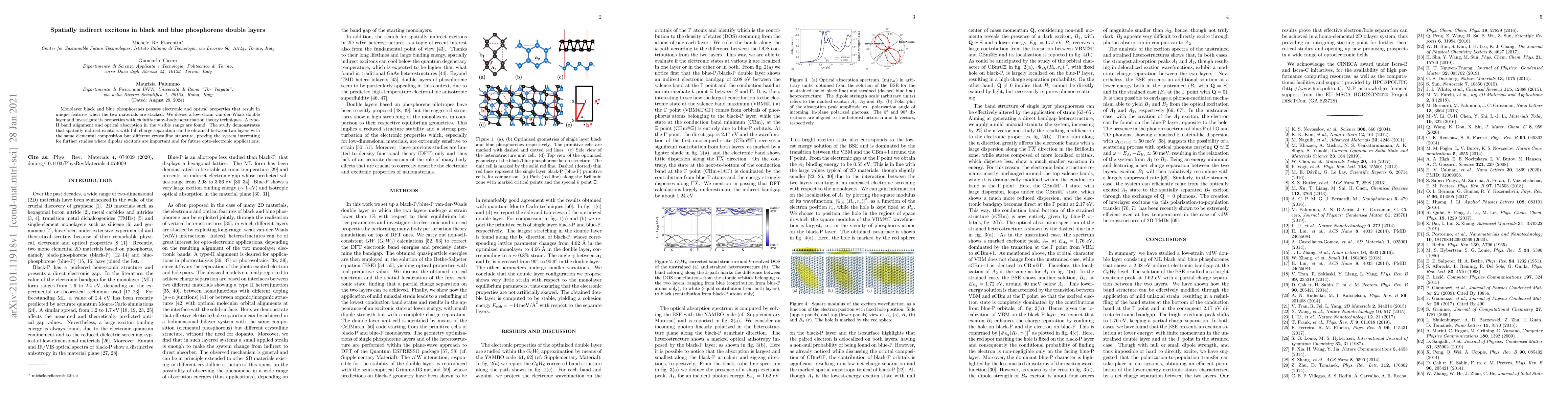 This paper investigates the electronic and optical properties of a low-strain van-der-Waals double layer composed of black and blue phosphorene, revealing type-II band alignment and visible range optical absorption. The study finds that spatially indirect excitons can form between the two layers, indicating potential for opto-electronic applications.