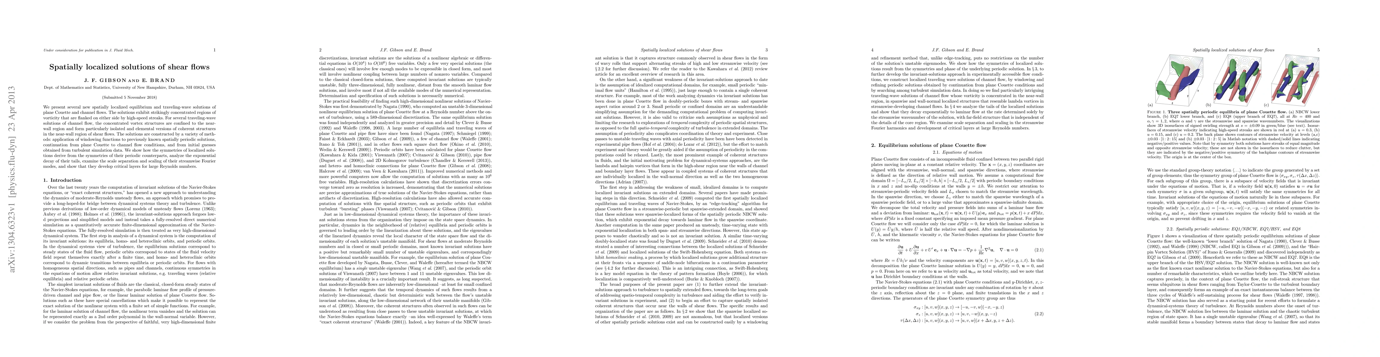 This paper introduces new localized equilibrium and traveling-wave solutions for plane Couette and channel flows, featuring concentrated vorticity regions flanked by high-speed streaks. The study employs various methods to construct these solutions and analyzes their symmetries, decay, and behavior at large Reynolds numbers.