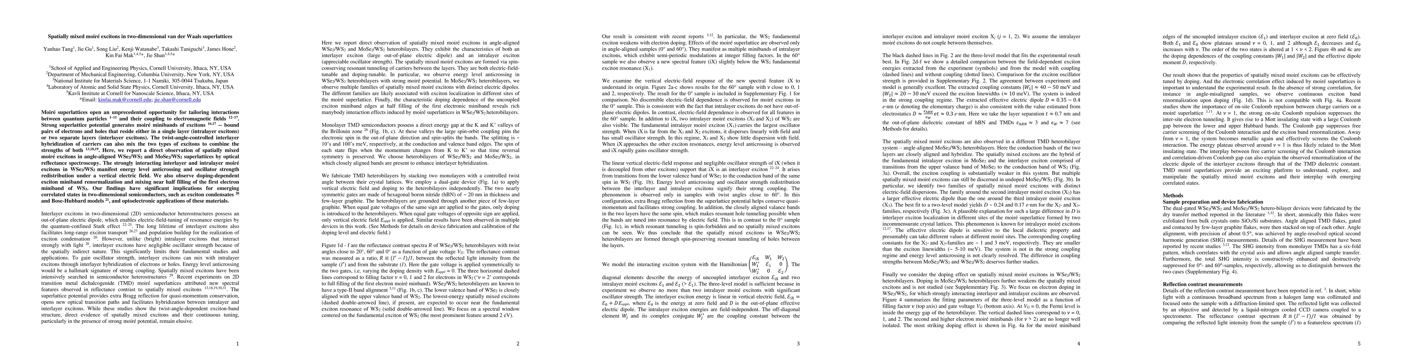 This study reports the direct observation of spatially mixed moiré excitons in two-dimensional van der Waals superlattices, revealing significant interlayer exciton-intralayer exciton hybridization and energy level dynamics under an electric field. These findings advance understanding of correlated states and optoelectronic applications in two-dimensional semiconductors.