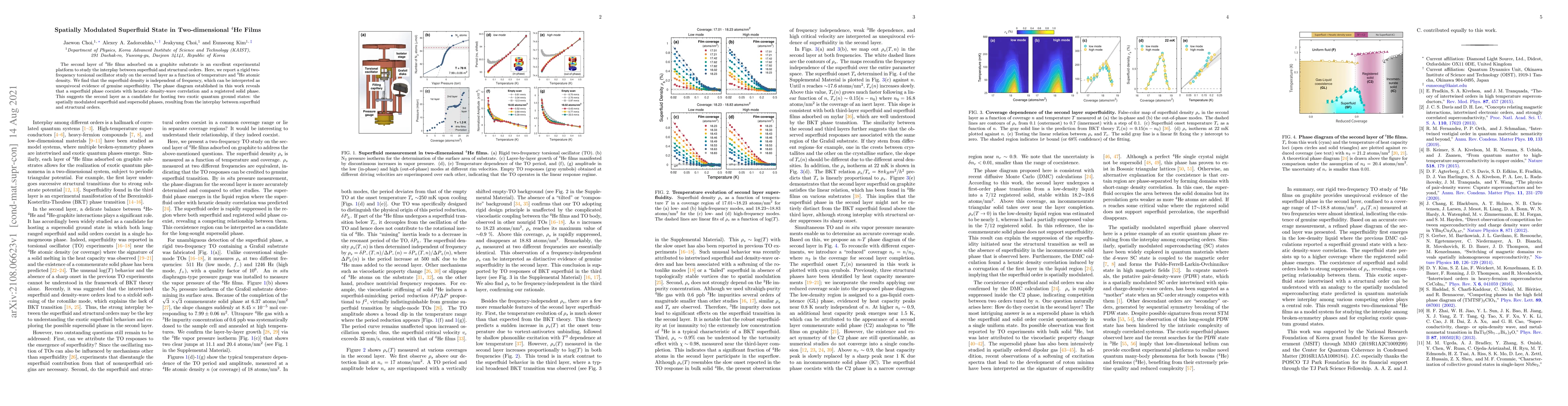 This study reveals a spatially modulated superfluid state in the second layer of $^4$He films on graphite, demonstrating coexistence with hexatic density-wave and solid phases. The superfluid density's independence of frequency confirms genuine superfluidity, suggesting the layer can host both superfluid and supersolid quantum ground states.