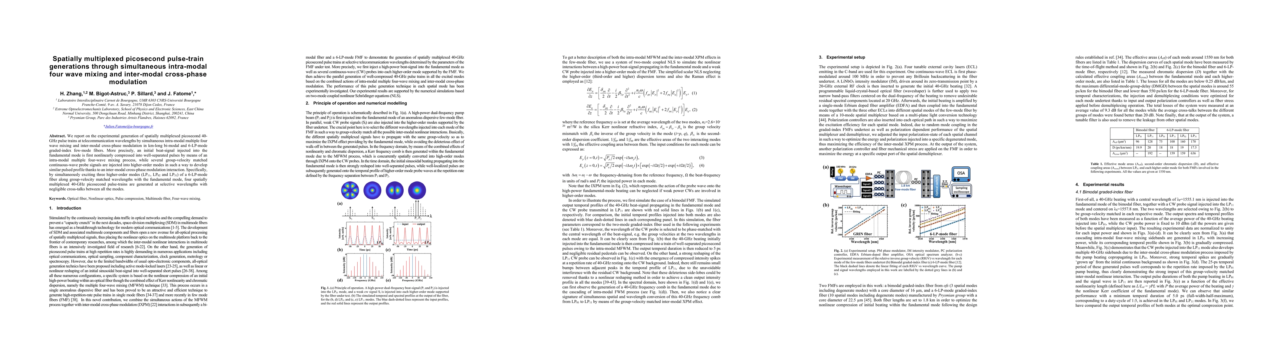 This paper demonstrates the generation of spatially multiplexed picosecond pulse-trains at 40 GHz through simultaneous intra-modal four wave mixing and intermodal cross-phase modulation in few-mode fibers, achieving four multiplexed pulse-trains with minimal cross-talk.