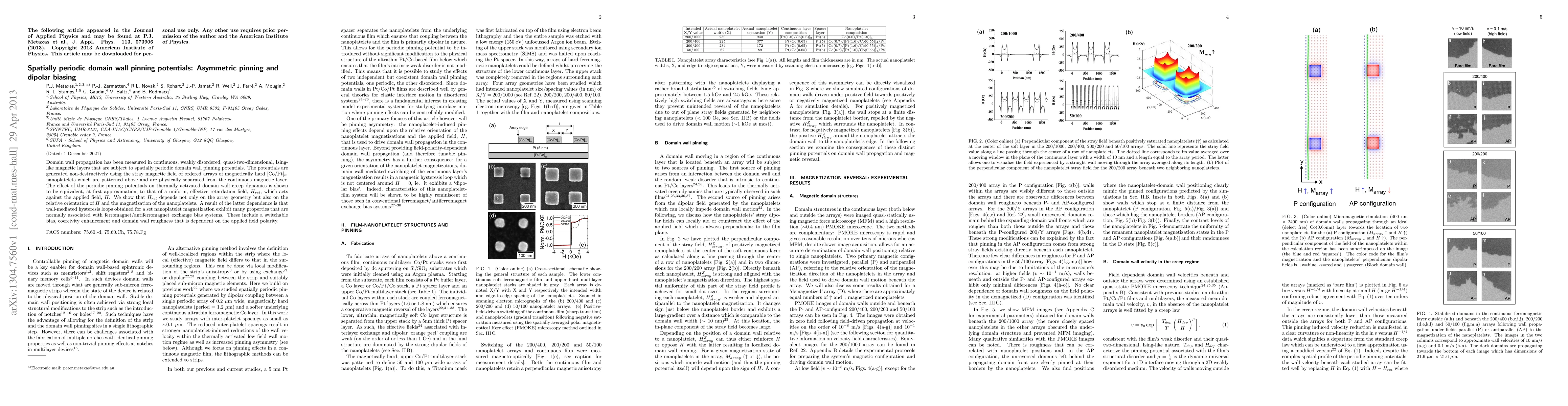 Domain wall propagation has been measured in continuous, weakly disordered, quasi-two-dimensional, Ising-like magnetic layers that are subject to spatially periodic domain wall pinning potentials. The potentials are generated non-destructively using the stray magnetic field of ordered arrays of magnetically hard [Co/Pt]$_m$ nanoplatelets which are patterned above and are physically separated from the continuous magnetic layer. The effect of the periodic pinning potentials on thermally activated domain wall creep dynamics is shown to be equivalent, at first approximation, to that of a uniform, effective retardation field, $H_{ret}$, which acts against the applied field, $H$. We show that $H_{ret}$ depends not only on the array geometry but also on the relative orientation of $H$ and the magnetization of the nanoplatelets. A result of the latter dependence is that wall-mediated hysteresis loops obtained for a set nanoplatelet magnetization exhibit many properties that are normally associated with ferromagnet/antiferromagnet exchange bias systems. These include a switchable bias, coercivity enhancement and domain wall roughness that is dependent on the applied field polarity.