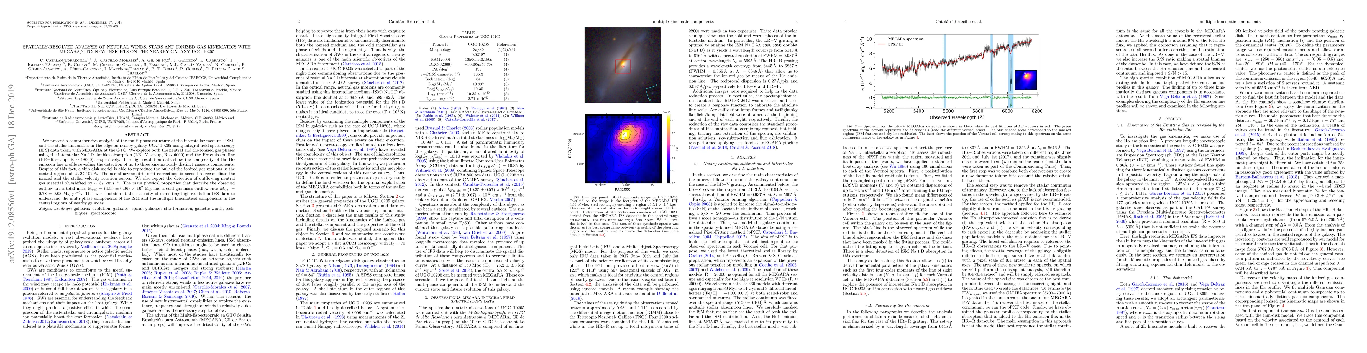 This study uses high-resolution spectroscopy to analyze the neutral winds, stars, and ionized gas in the nearby galaxy UGC 10205, revealing a complex multi-phase structure with a detected outflow of neutral gas material.
