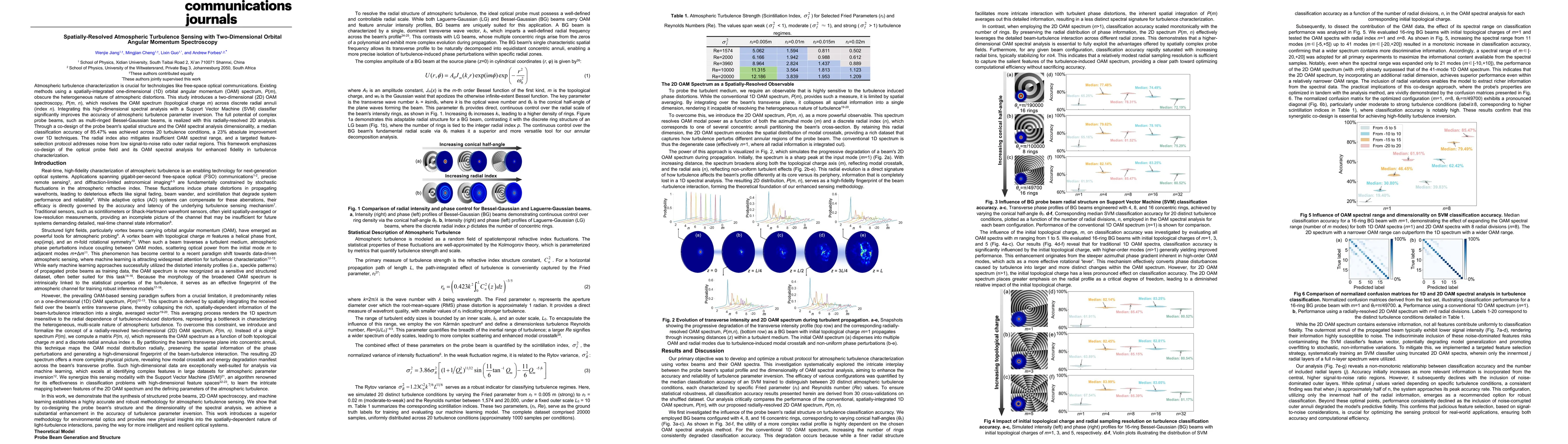 Atmospheric turbulence characterization is crucial for technologies like free-space optical communications. Existing methods using a spatially-integrated one-dimensional (1D) orbital angular momentum (OAM) spectrum, P(m), obscure the heterogeneous nature of atmospheric distortions. This study introduces a two-dimensional (2D) OAM spectroscopy, P(m, n), which resolves the OAM spectrum (topological charge m) across discrete radial annuli (index n). Integrating this high-dimensional spectral analysis with a Support Vector Machine (SVM) classifier significantly improves the accuracy of atmospheric turbulence parameter inversion. The full potential of complex probe beams, such as multi-ringed Bessel-Gaussian beams, is realized with this radially-resolved 2D analysis. Through a co-design of the probe beam's spatial structure and the OAM spectral analysis dimensionality, a median classification accuracy of 85.47% was achieved across 20 turbulence conditions, a 23% absolute improvement over 1D techniques. The radial index also mitigates insufficient OAM spectral range, and a targeted feature-selection protocol addresses noise from low signal-to-noise ratio outer radial regions. This framework emphasizes co-design of the optical probe field and its OAM spectral analysis for enhanced fidelity in turbulence characterization.
