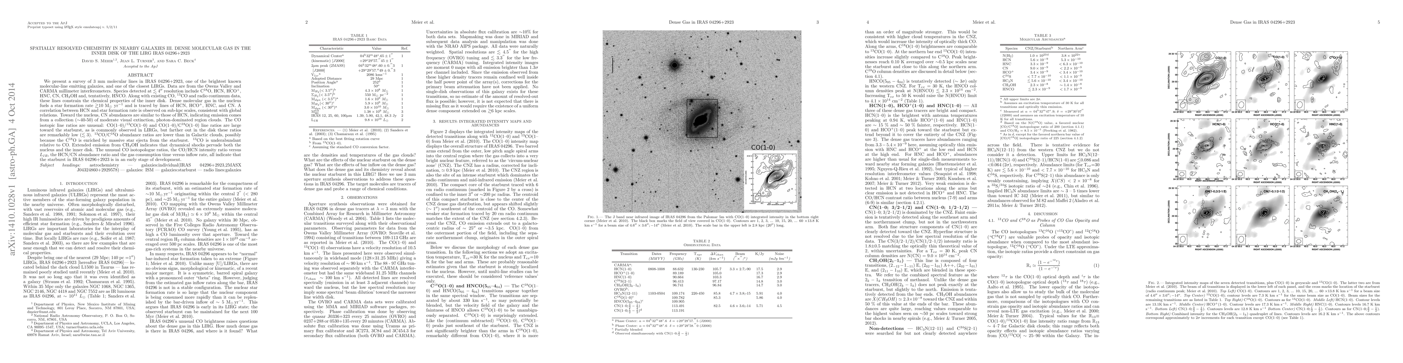This study, using Owens Valley and CARMA interferometers, reveals detailed chemical properties of the inner disk in the LIRG IRAS 04296+2923. Key findings include unusual CO isotopologue ratios, high star formation rate traced by HCN, HCO+, HNC, and CN, and evidence of dynamical shocks indicated by CH_3OH emission. The results suggest the starburst is in an early developmental stage.