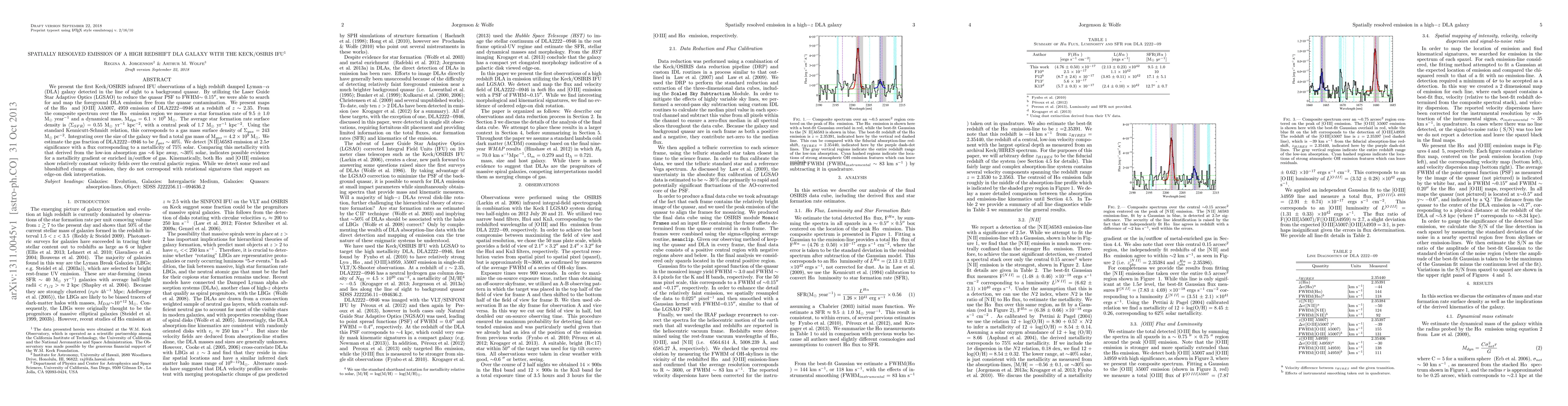 We present the first Keck/OSIRIS infrared IFU observations of a high redshift damped Lyman-alpha (DLA) galaxy detected in the line of sight to a background quasar. By utilizing the Laser Guide Star Adaptive Optics (LGSAO) to reduce the quasar PSF to FWHM~0.15 arcsec, we were able to search for and map the foreground DLA emission free from the quasar contamination. We present maps of the H-alpha and [OIII] $\lambda \lambda$ 5007, 4959 emission of DLA 2222-0946 at a redshift of z ~ 2.35. From the composite spectrum over the H-alpha emission region we measure a star formation rate of 9.5 $\pm$ 1.0 M$_{\odot}$ year$^{-1}$ and a dynamical mass, M$_{dyn}$ = 6.1 x 10$^9$ M$_{\odot}$. The average star formation rate surface density is < \Sigma_{SFR} > = 0.55 M$_{\odot}$ yr$^{-1}$ kpc$^{-2}$, with a central peak of 1.7 M$_{\odot}$ yr$^{-1}$ kpc$^{-2}$. Using the standard Kennicutt-Schmidt relation, this corresponds to a gas mass surface density of $\Sigma_{gas}$ = 243 M$_{\odot}$ pc$^{-2}$. Integrating over the size of the galaxy we find a total gas mass of M$_{gas}$ = 4.2 x 10$^9$ M$_{\odot}$. We estimate the gas fraction of DLA 2222-0946 to be $f_{gas}$ ~ 40%. We detect [NII]$\lambda$6583 emission at 2.5 sigma significance with a flux corresponding to a metallicity of 75% solar. Comparing this metallicity with that derived from the low-ion absorption gas ~6 kpc away, ~30% solar, indicates possible evidence for a metallicity gradient or enriched in/outflow of gas. Kinematically, both H-alpha and [OIII] emission show relatively constant velocity fields over the central galactic region. While we detect some red and blueshifted clumps of emission, they do not correspond with rotational signatures that support an edge-on disk interpretation.