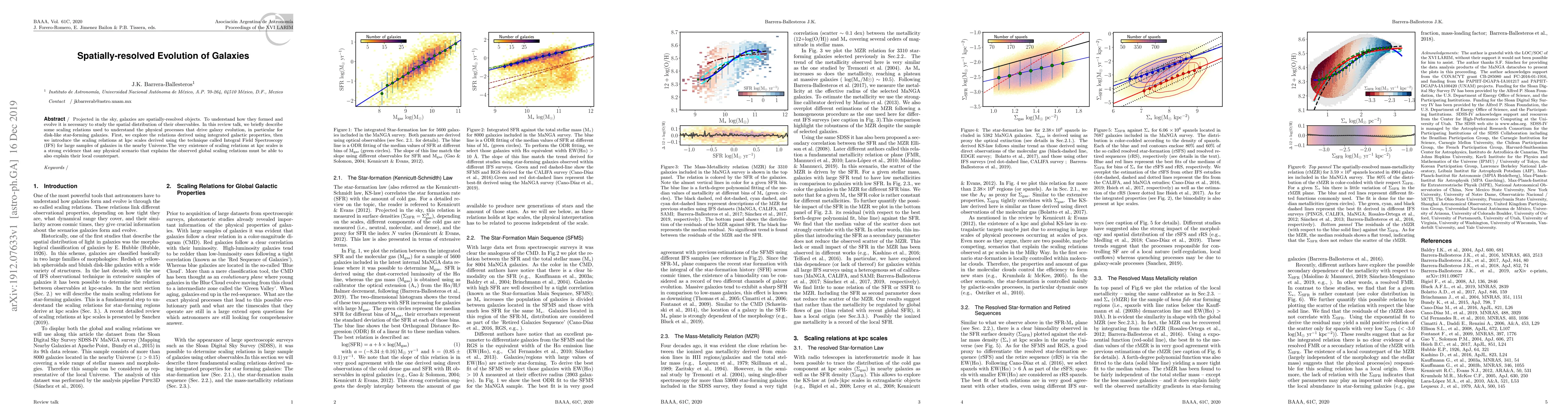Projected in the sky, galaxies are spatially-resolved objects. To understand how they formed and evolve it is necessary to study the spatial distribution of their observables. In this review talk, we briefly describe some scaling relations used to understand the physical processes that drive galaxy evolution, in particular for disk-like star-forming galaxies. First, we explore the relations derived using integrated galactic properties, then we introduce the scaling relations at kpc scales derived using the technique called Integral Field Spectroscopy (IFS) for large samples of galaxies in the nearby Universe.The very existence of scaling relations at kpc scales is a strong evidence that any physical scenario that explains the observed global scaling relations must be able to also explain their local counterpart.