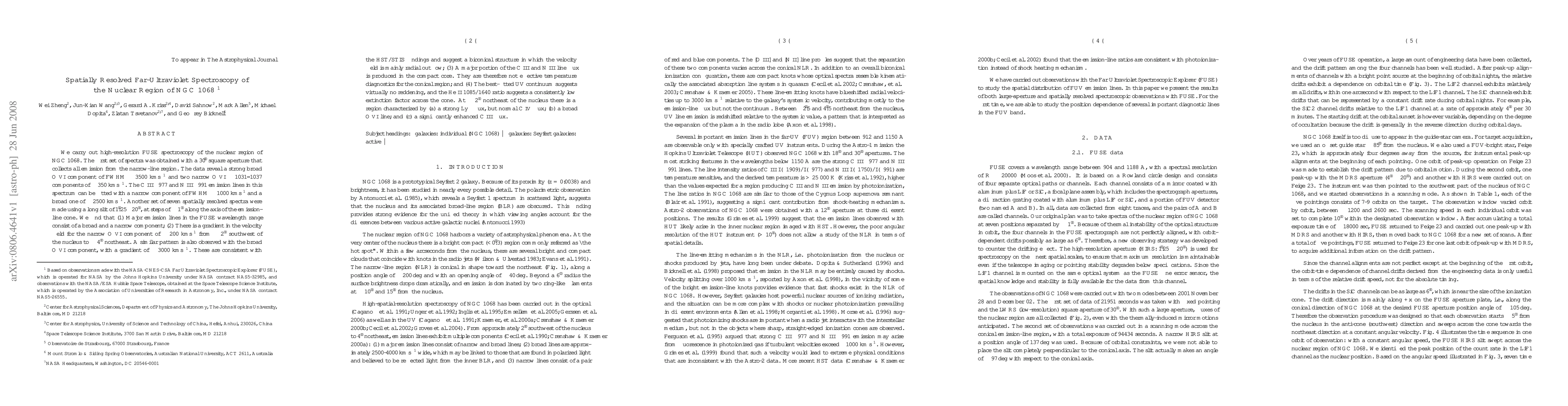 Researchers used high-resolution spectroscopy to study the nuclear region of NGC 1068, finding a mix of broad and narrow emission lines with velocity gradients that suggest a biconical structure of radial outflow.
