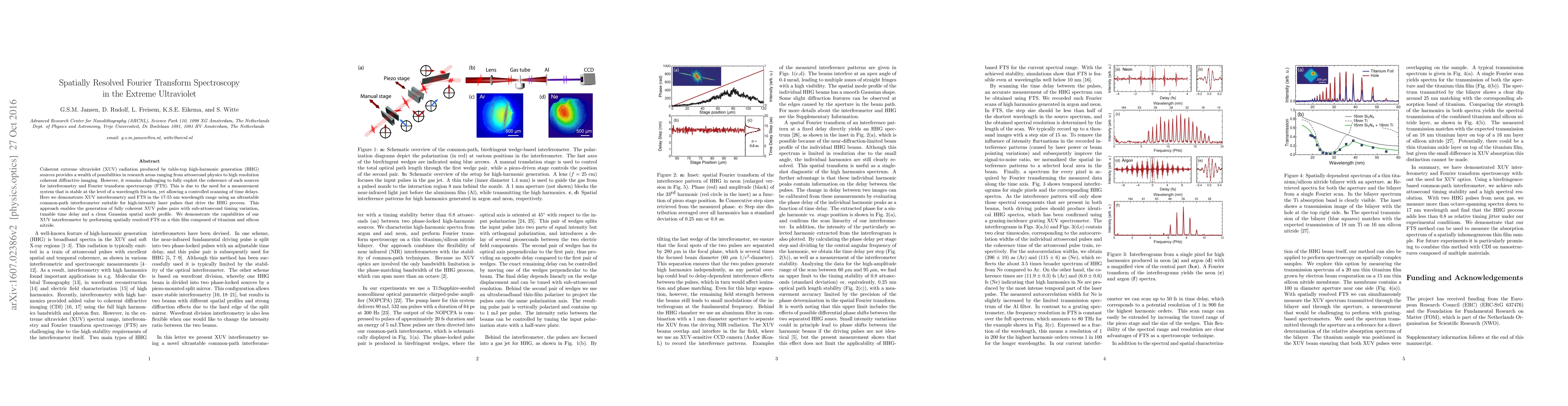 This paper presents an ultrastable common-path interferometer for spatially resolved Fourier transform spectroscopy in the extreme ultraviolet range, enabling coherent interferometry and high-resolution imaging. The method generates fully coherent XUV pulse pairs with sub-attosecond precision, demonstrated through spatially resolved FTS on a titanium and silicon nitride thin film.