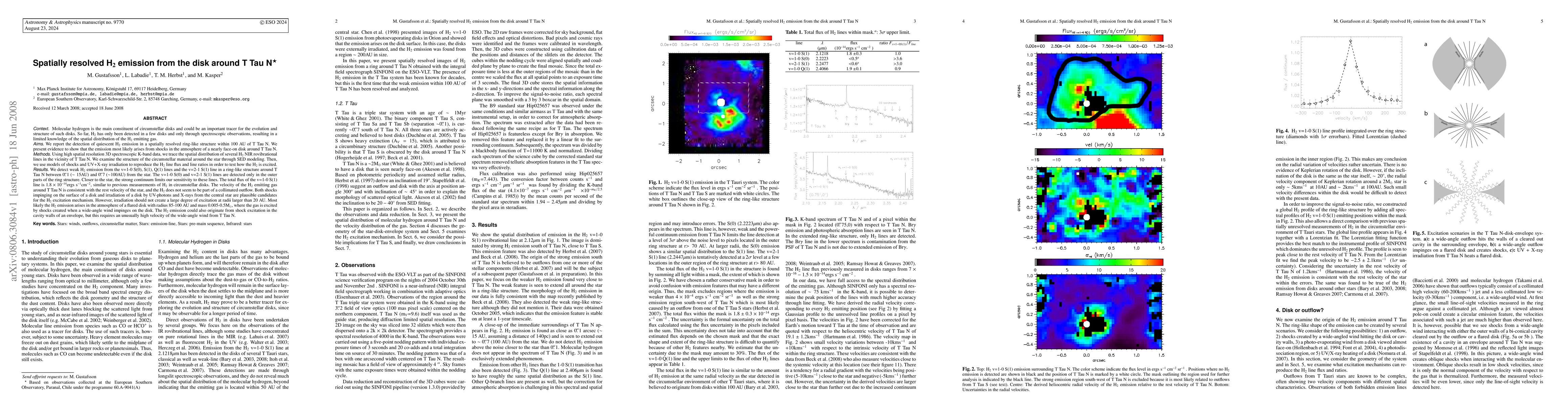 Researchers detect H2 emission in a ring-like structure around T Tau N, suggesting shocks in the disk atmosphere excite the gas, with possible causes including flared disks or wide-angle winds.