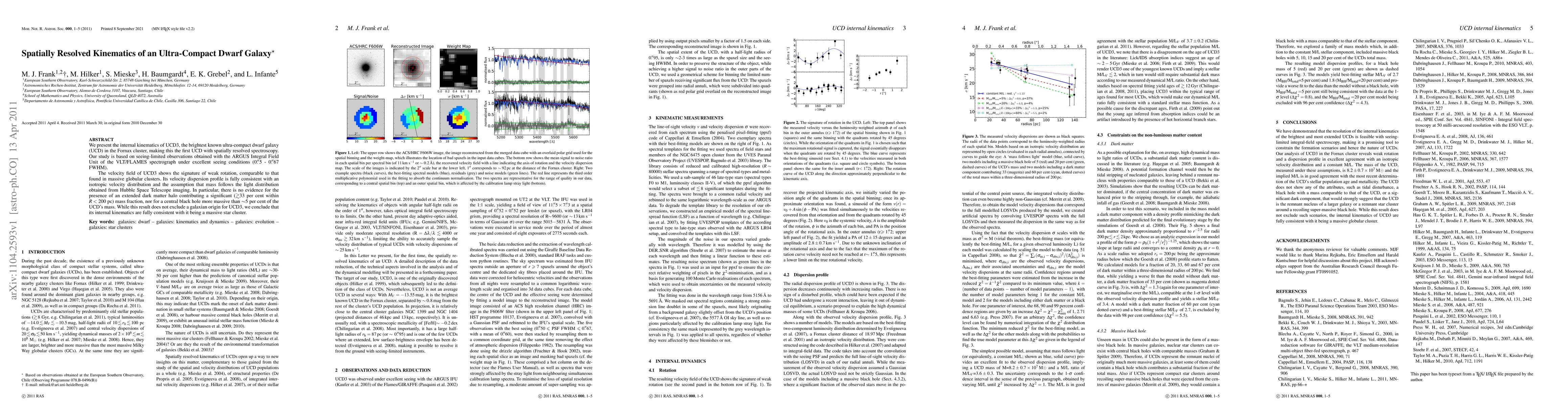 This study analyzes the internal kinematics of UCD3, an ultra-compact dwarf galaxy, finding weak rotation and no evidence for a dark matter halo or central black hole, supporting its interpretation as a massive star cluster.